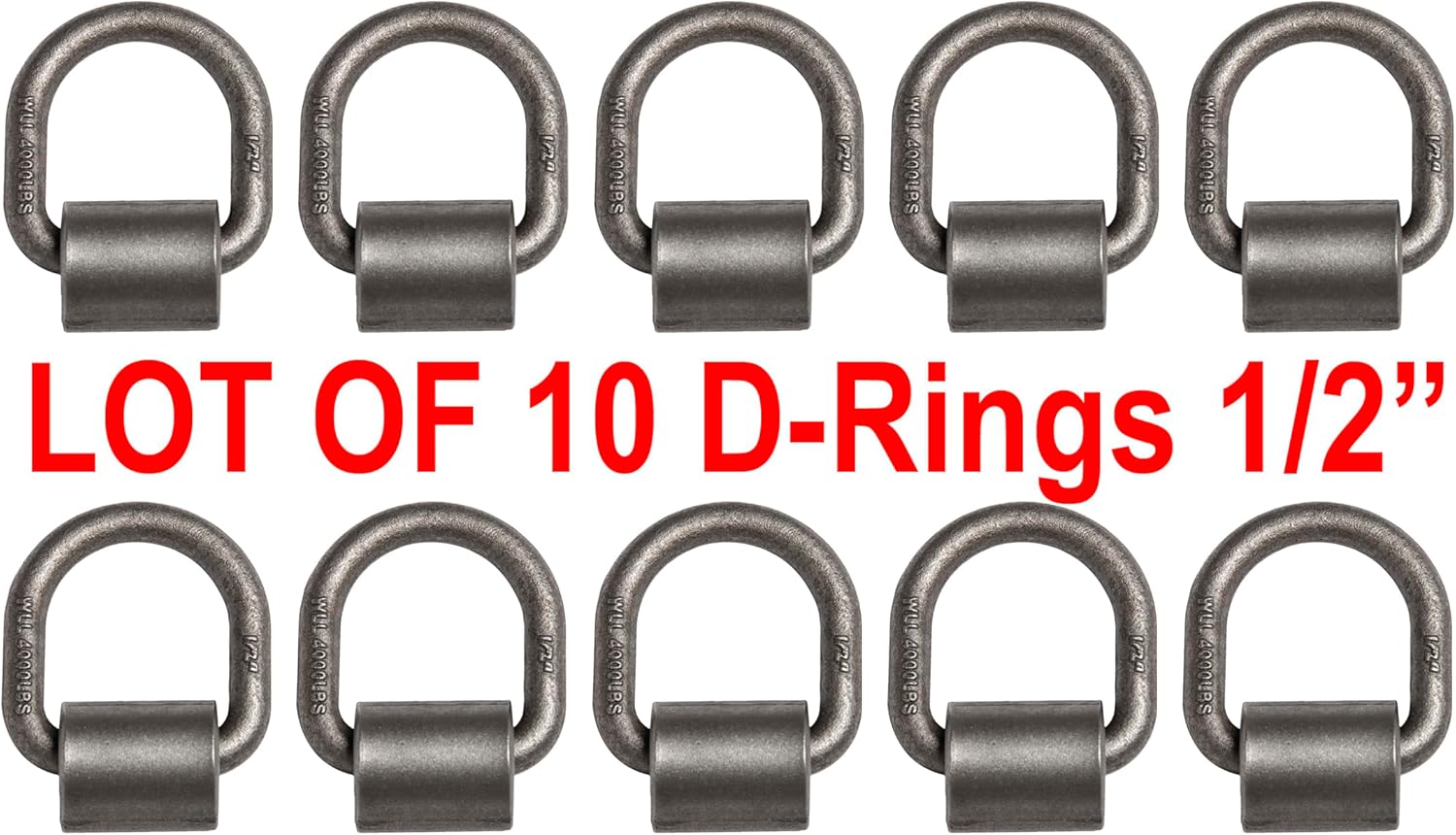 Brand New Heavy Duty 1/2"x 10 Pack Forged D ring & Weld-On Clip Anchor Point Assembly Description Brand New rings and clips. 1/2" Diameter Forged D-Ring assemblies with attachment clips. These rings have a 12,000 lb Minimum breaking strength and 4,000 lb Working load limit. *Do not exceed working load limit. D-rings are 1/2" Diameter, 3 1/4" wide x 3 1/2" high on outside without clip. With clip they are 4" high from top to bottom. Great for Truck Trailers, Utility Trailers, RV's, Auto Haulers, ATV Tiedowns, Farm applications and many more uses