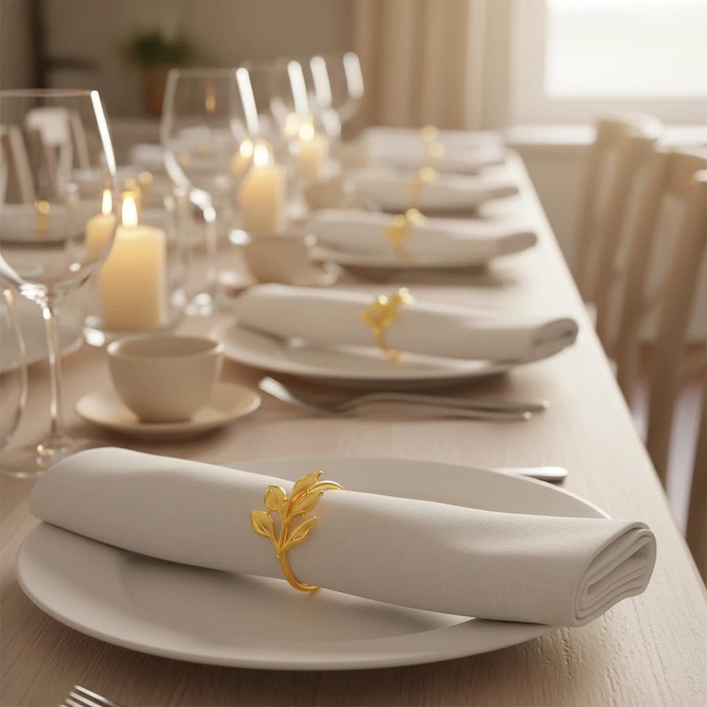 Features: With five different designs: Christmas Snow/Deer/Tree and Leaf/Wheat. AstraSpark 100 Pcs Gold Napkin Rings set is the ultimate solution for adding a touch of elegance to multi-tables for various scenarios: daily dinners, festive Christmas gatherings, Weddings, Thanksgiving, or grand banquets. This complete bulk set ensures you have enough for every guest at large events, creating a warm and celebratory ambiance that makes any gathering unforgettable. Color: Gold Function: Napkin Buckle Product Size: 1.77 Inches for Product and 1.57 Inches for Ring Packing: Bag/Box Packing List: 100pcs × Napkin Ring