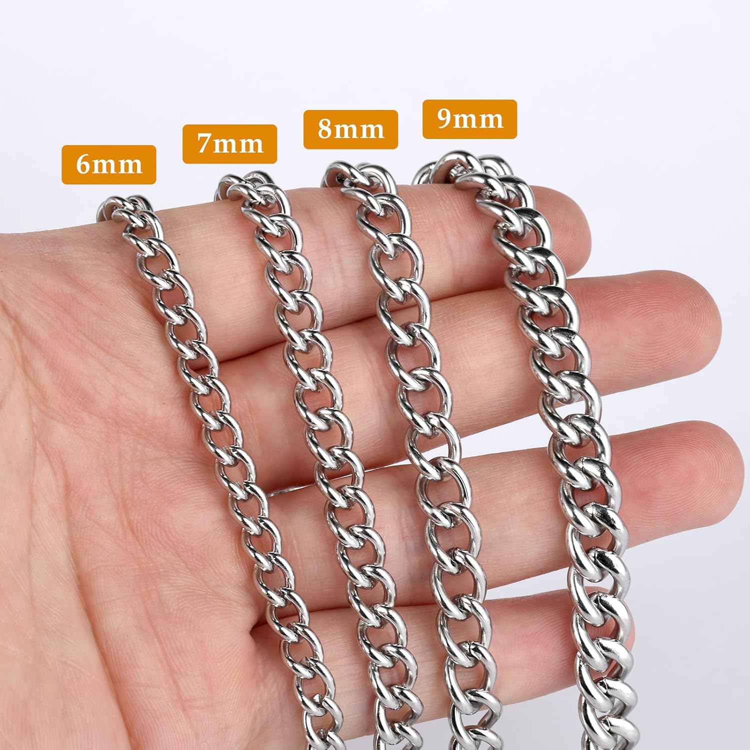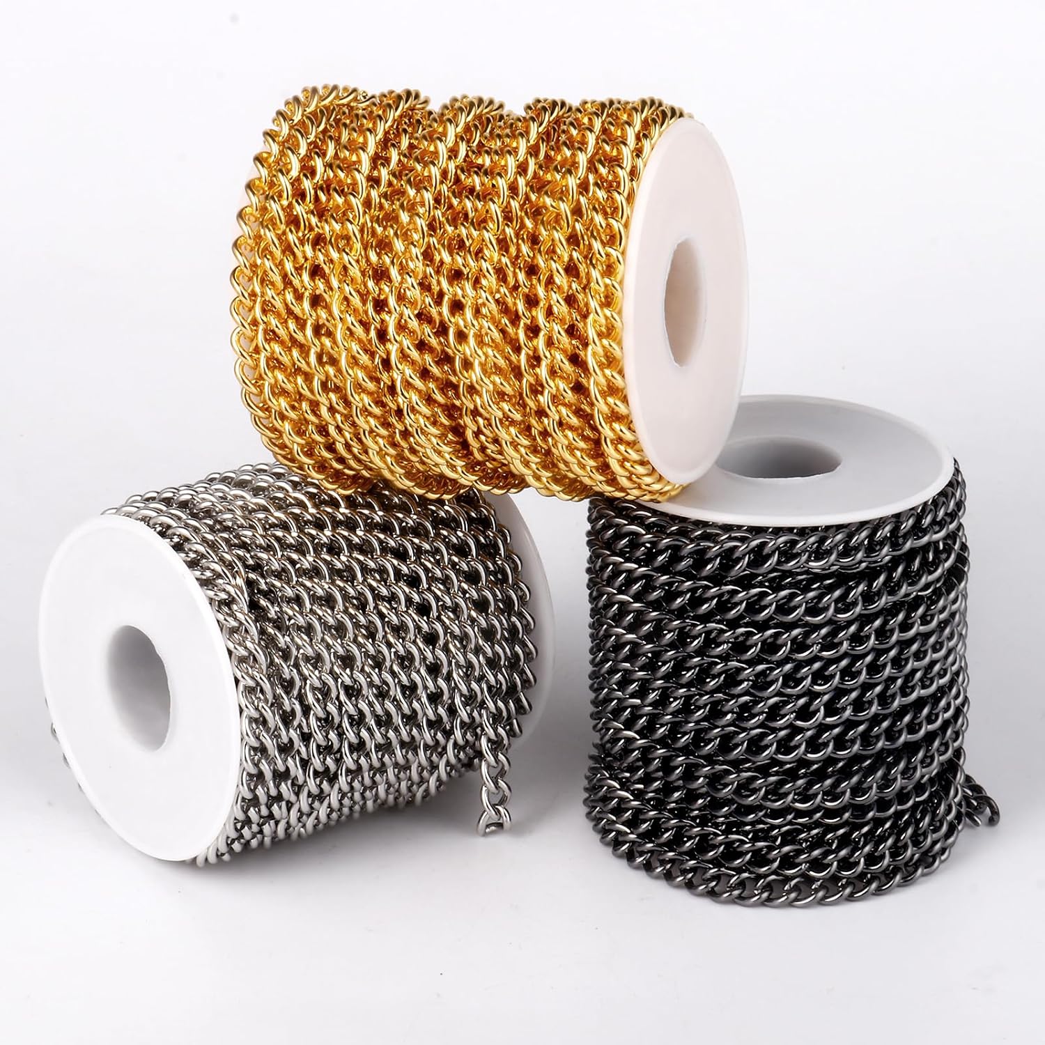 16.5 FT 18K Gold Plated Stainless Steel Curb Chain Roll, 7mm 304 Stainless Steel Gold Twisted Links Chains Bulk for Jewelry Making DIY Craft