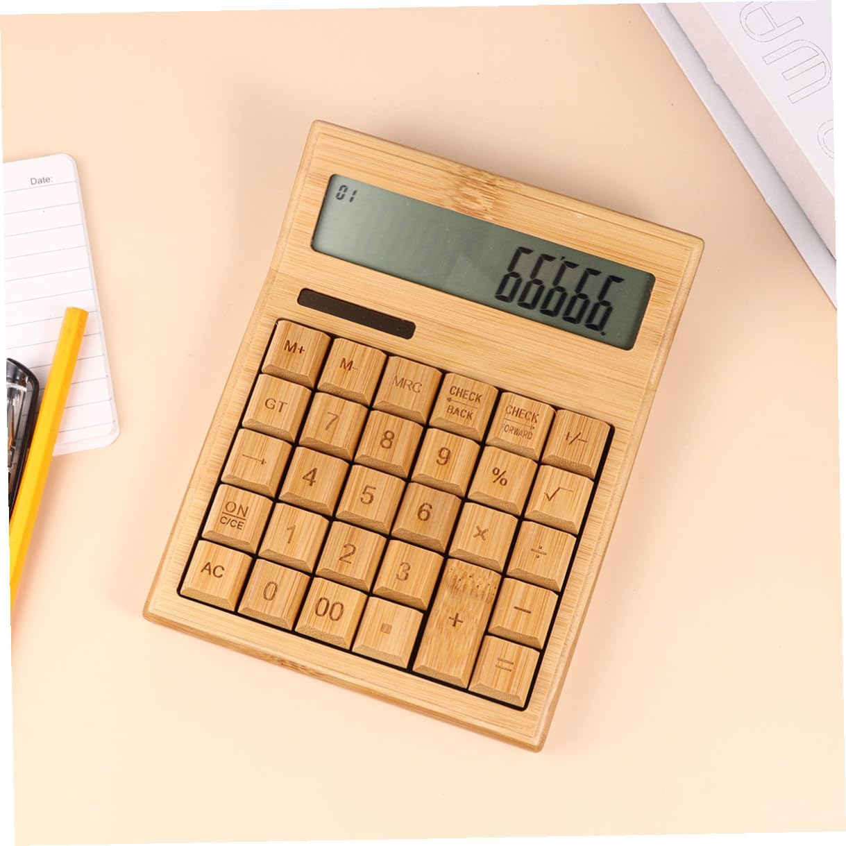 Package List 1 x calculator Characteristics -Product Info:Solar calculator - Size: 17.5x13x1.5cm. - Material: Timber. - Perfect for school, home and office use basic office calculators. - Made from for practical use. - Compact size, light weight, easy to use and convenient for carry. - ColorBrown - Suitable for travel and carry out, and products through the powered calculator. - It is really a good assistant for your daily life small calculator handheld.Goods Descriptionsolar powered calculator With portable design and easy to use, it is suitable for home and office use.portable calculator small It can provide a good convenience for you to calculate those complex numbers.small calculator handheld The product is a wonderful calculator which made from material for and use