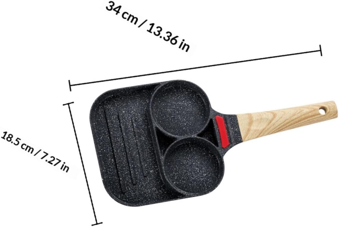 Package List 1 x Egg Frying Pan Characteristics - Size: About 34.00X18.50X2.50cm/13.36X7.27X0.98in - Color: Black - Material: Aluminum, Wood -Product Info:Fried egg burger pot - The surface is non-sticky, clean and . A great egg and pancake cooking tool omelette pan nonstick. - Non stick coating, safe and healthy, easy to cook, stains are not easy to remain 3-Compartment Frying Pan. - Cooking is quicker and easier, requiring only a few simple steps Breakfast Skillet Pan. - It has the characteristics of hard texture, not easy to deform, good heat transfer effect Egg Frying Pan. - Long handle, heat-resistant and non-slip to grip. 3-section design, fast soaking, Non-stick Omelette Pot.Goods InformationNon-stick Omelette Pot It is perfect for making fried eggs, sandwiches, pancakes and omelets, etc.Breakfast Frying Pan The frying pan is made of safe material, which enables even and efficient heat distribution.Kitchen Accessory This lightweight and skillet can keep the flavors natural and tasty