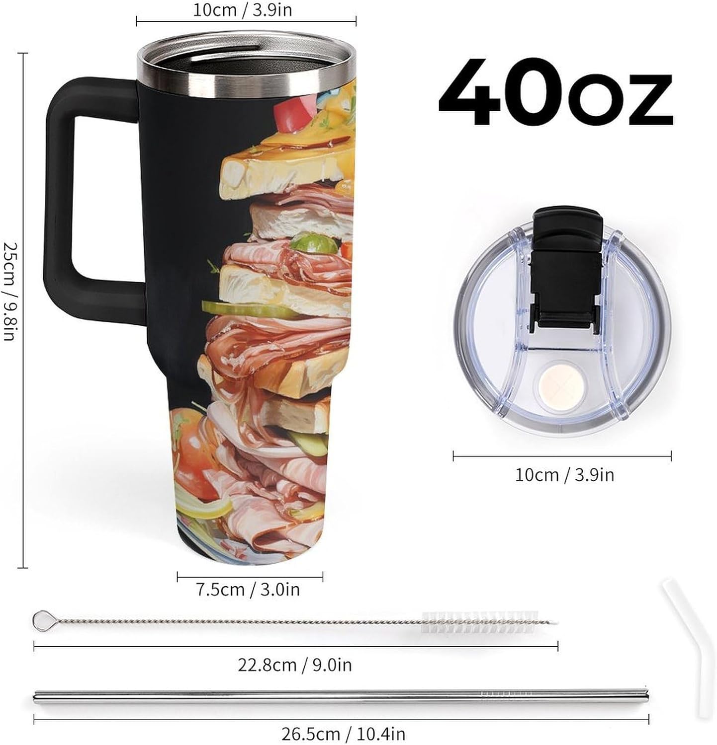 40 oz Tumbler: Keep Your Drinks Hot or Cold for Longer Perfect for long trips or days at the beach, this 40 oz thermal tumbler keeps your drinks at the perfect temperature for hours. The Tumbler is made from 304 stainless steel and fits standard cupholders, and with a variety of pattern options, you can get an Emotional Support Water Bottle. Its double-wall stainless steel design ensures optimal insulation, while the leak-proof lid prevents spills. Plus, its 180-degree rotating handle adds convenience and practicality to your daily adventures. Capacity: 40 oz (approx. 1.2 liters) Double-wall insulation Leak-proof lid 180-degree rotating handle Enjoy your favorite drinks anytime, anywhere with this versatile and practical thermal tumbler! Tumbler is double walled and vacuum insulated to keep your drink hot or cold for hours. The cup is outfitted with an ergonomic handle, that is aesthetically designed for comfort. It comes with a straw lid and two straws so you can enjoy your favorite beverage on the go.
