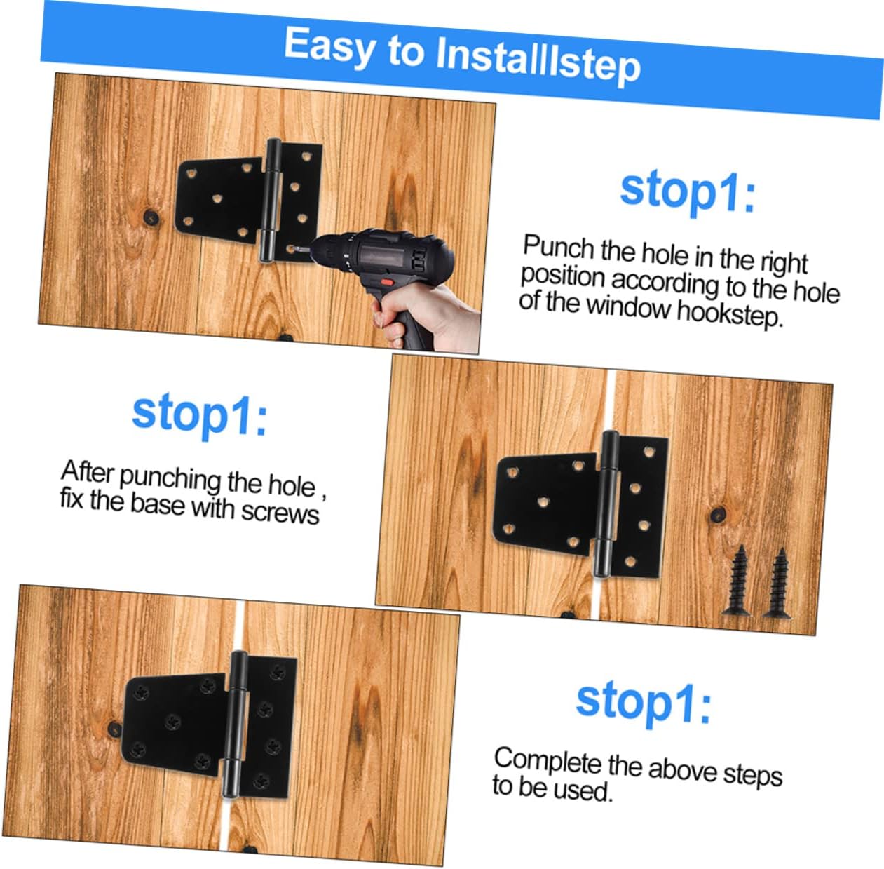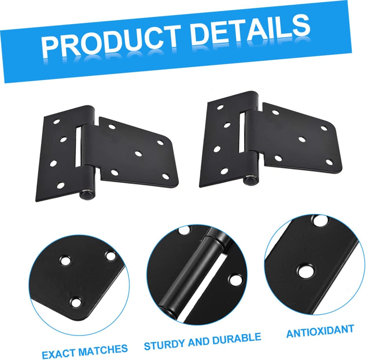 Package List 4 x Door Hinges Characteristics - Color: Black Fence Gate Hinge. - Size: 12.00X11.00X0.30cm/4.72X4.32X0.12in Screw Mounting Hinge. - Material: Steel Barn Door Hinges. - The door hinge tool adopts a unique and practical fixing design, which closes smoothly without worrying about jamming Gate Door Hinge. - Non-Corrosion, , Safer, More Reliable, Practical and for Bedroom Doors Iron Tee Strap Hinges. - The product is made of steel material, durable and practical, can be used for a long time Heavy Duty Gate Hinges. - This safe and durable iron door hinge is to install and remove, lightweight and portable Heavy Duty Hinges. - This door hinge is suitable for barn door, wooden door, aluminum frame door with excellent performance Iron Material Hinges.Goods DescriptionT Barn Storage Hinges This item is a door hinge.Fences Hinges Compatible with most types of home and interior doors.Screw Mounting Hinge Made of safe and durable steel material with .Iron Tee Strap Hinges to install without breaking doors, floors or walls.Heavy Duty Gate Hinges The door hinge tool has a unique and practical design for smooth and closing