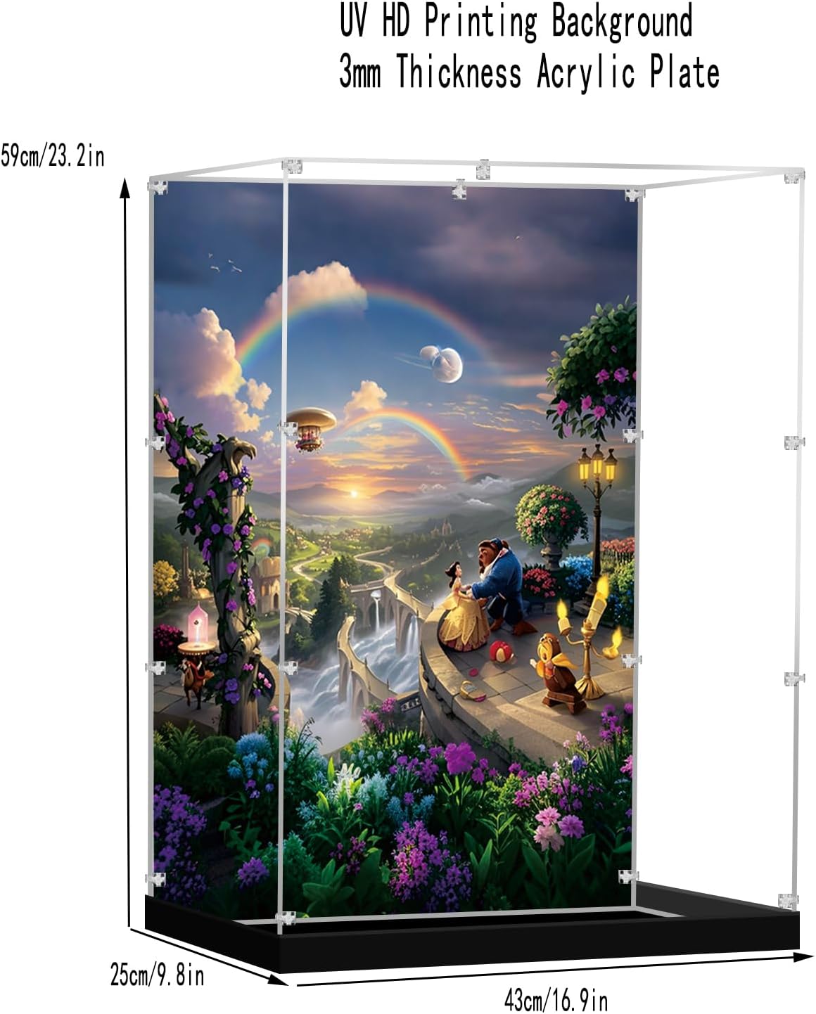 Acrylic Display Case Compatible with Lego 43263 Castle Dustproof Clear Display Box with Background(NOT Included The Model)