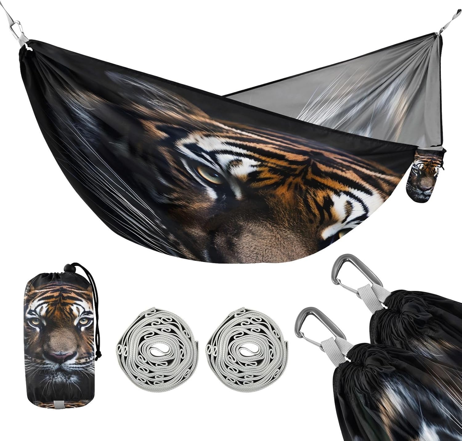 ALAZA Tiger Portrait Animal Camping Hammocks Single or 2 Person 500 lbs Portable Parachute Travel Hammock w/Tree Straps for Hiking Backpacking Indoor Outdoor