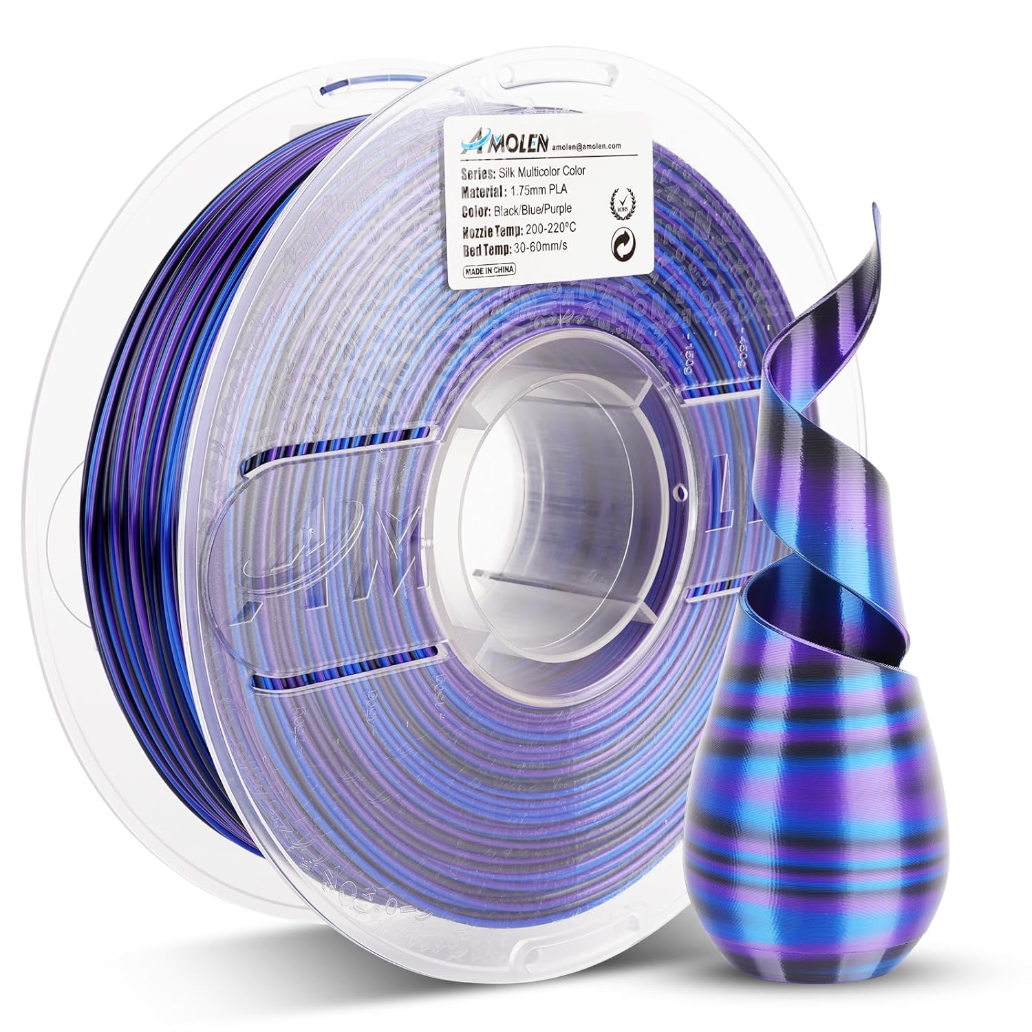AMOLEN Silk PLA Filament Bundle, Shiny Gradient Black Red Gold & S-Series Black Blue Purple PLA