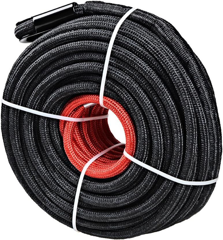 Condition: 100% Brand New Package included: 1X Synthetic Winch Rope Size: Length: 95' Thickness: 3/8" Breaking Strength: Max. 20,500 lbs Color: Black (actual color may be little different due to photographic equipment & monitor setting) Material: Synthetic Fiber Weight: 1960g Features: Stainless Steel Thimble for Hook Attachment (Hook is not included). Come with Protective Sleeve to Prevent Overheating, Slippage, Rough or Sharp Surfaces. Included Heat Guard to protect the rope from excessive heat caused by the brake mechanism inside of the winch drum Upgrade your Winch with stronger Synthetic Winch Rope than Traditional Steel Cables The Synthetic Rope won't Kink, Curl or Splinter Upgrade Your Winch With Stronger Synthetic Winch Rope Than Traditional Steel Cables The Synthetic Rope Won't Kink, Curl Or Splinter Extremely Light, Float In Water. Minimal Stretch And Non Rotation Workable Below -20 Degree Centigrade Easy To Handle, Splice, No Sharp Frays Compatible With: Universal fits most vehicle such as SUV ATV UTV Truck ect. Note: DO NOT pull out the red protective sleeve when working for safety. Please Read All Description and Fitment Before Ordering the Product