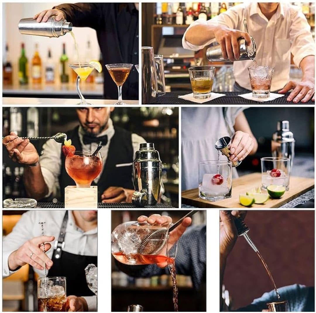 SHAKE, STIR, SIP & CRAFT YOUR FAVORITE COCKTAILS LIKE A PRO WITH OUR PROFESSIONAL BAR SETS FOR THE HOME Are you ready to shake, stir, and sip your way into the world of craft cocktails like a seasoned mixologist then Look no further we are introducing bar mixing set, the perfect addition to any home bar or professional bartending arsenal. Whether you're a cocktail enthusiast or a professional bartender, this bar tools bartender tool kit is thoughtfully designed to cater to your every mixology need. This cocktail set bartender kit is crafted with precision and a passion for perfecting your cocktail experience. This cocktail shaker with strainer is expertly manufactured from premium 304 stainless steel, ensuring durability, rust-resistance, and a timeless aesthetic that will elevate your cocktail-making game. So enjoy your parties and events with this unique bar kits for bartender home. Our cocktail bartender shaker set is a masterpiece of design, precision engineering, and quality craftsmanship. Say goodbye to flimsy bartending set that leak or lose their shine with our set, you're investing in top-tier quality. Why choose us? Top-quality 304 stainless steel material, ergonomic design, easy to grasp and clean. No leaking, Watertight seal provides great leak-proof quality. Luxurious & Elegant packaging, which can be a perfect gift for your family and friends. Wooden stand, which is a stylish design, full of modern art 4 stainless steel stones, suitable for whiskey and more Drinks! Exclusive recipe guide, which makes it easier to use for beginners. Great for home, restaurants, hotels, bars, parties, places of entertainment. Don't miss out on the opportunity to take your mixology skills to the next level. Click on Add to Cart to get your premium bartender tools cocktail shaker kit today and unlock a world of cocktail creativity in the comfort of your own home. Cheers to unforgettable nights, memorable gatherings, and perfectly crafted cocktails!