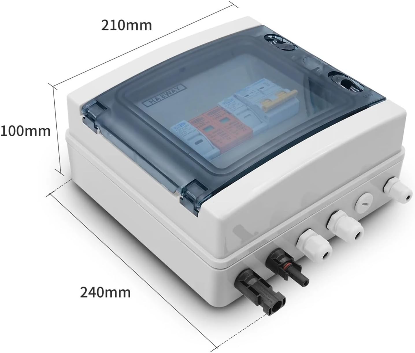 DC 600V PV Combiner BoxIP65Include: 1100V Fuse holider with 15A fuse, 2P DC 600V MCB 32A, 2P DC SPD 600V
