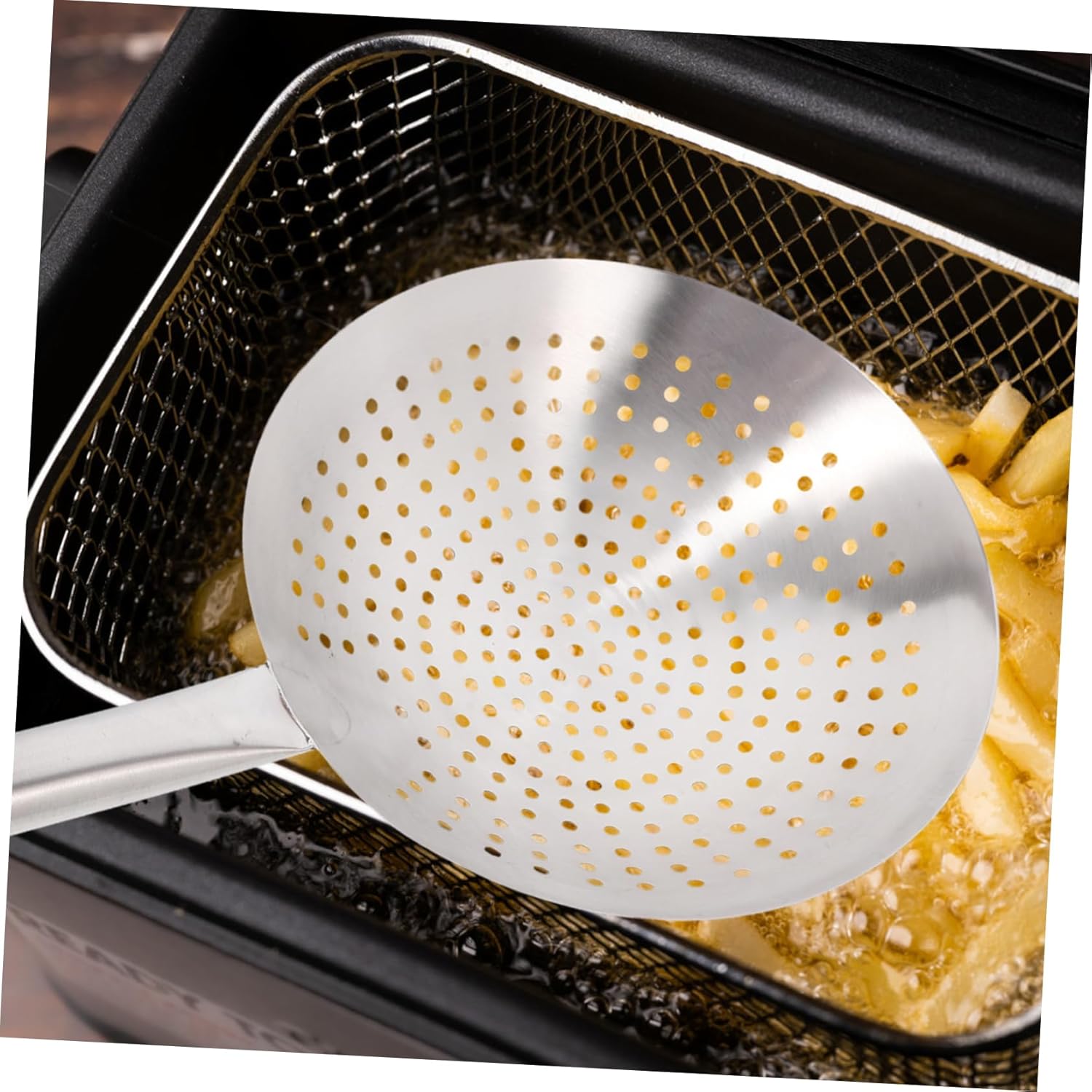 Description Filter Spoon Stainless Steel Strainer Skimmer Slotted Spoon Kitchen Skimmer Spoon for Home Kitchen Hotpot Silver 30cm Features- Colour: Silver.- Size: 51x30x8cm- Material: Stainless steel Package Including 1pc filter spoon
