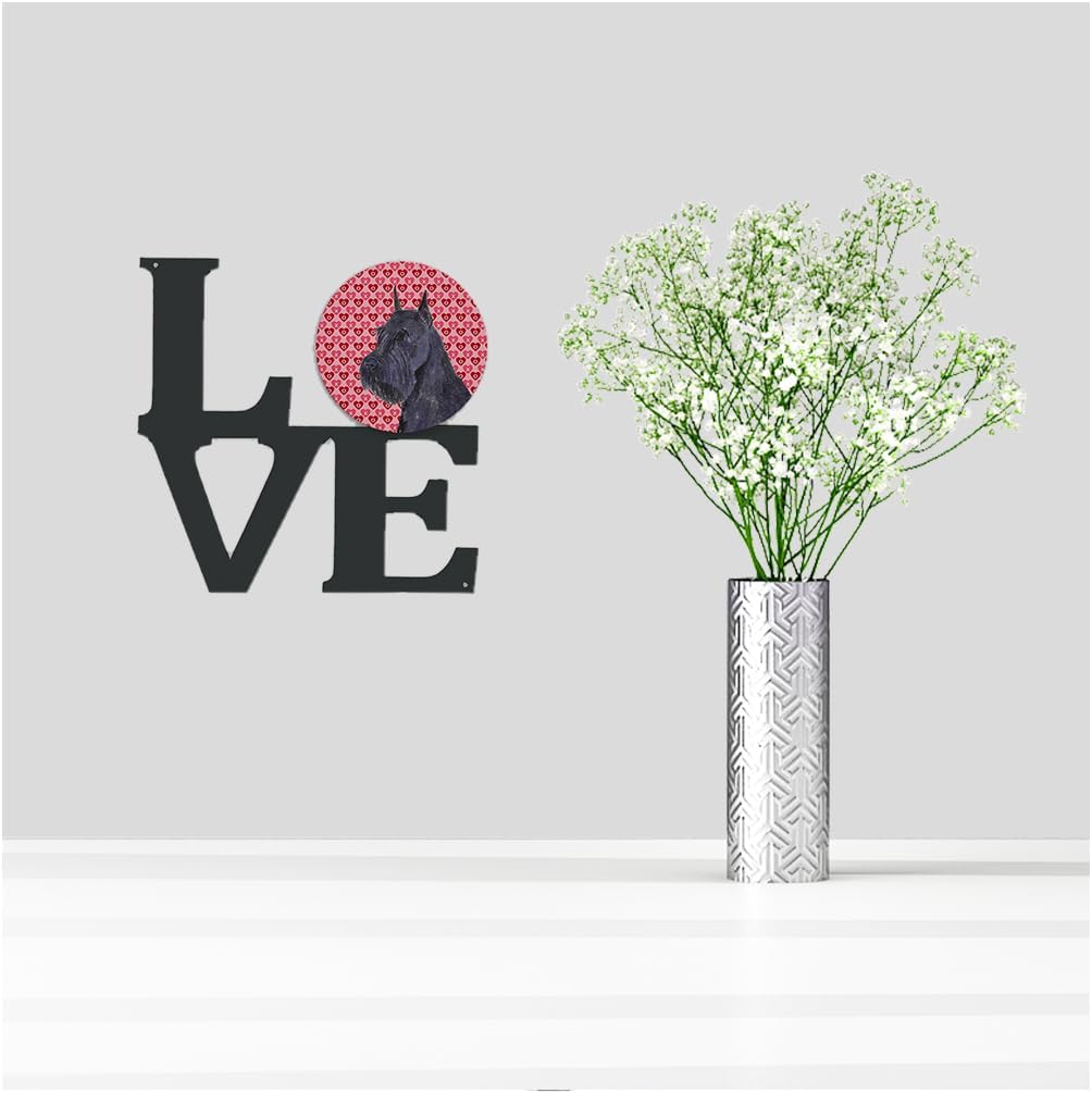 This piece of wall art shows everyone your LOVE. The letters L, O, V, and E are cut from steel and decorated with an aluminum circle contaning artwork from one of our artists. The letters are painted with a flat black white and the aluminum circle is printed in full color. Two holes in the piece are included to assist with hanging the artwork. This product measures 11 1/2 inches by 11 3/4 inches.