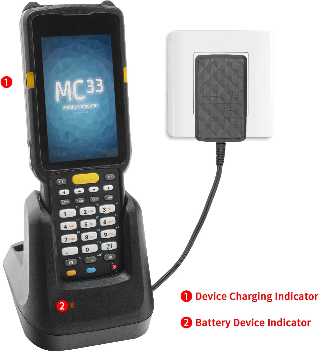 This CRD-MC33-2SUCHG-01 single-slot charging and communication cradle is designed for Zebra MC3300 series mobile computers, including MC3300, MC3300x, MC3300ax, MC3400, and other variants. It provides secure and efficient charging along with USB data communication, making it ideal for warehouse, retail, and logistics environments. The compact design saves space while maintaining stable performance, and the included power connectivity ensures plug-and-play convenience.