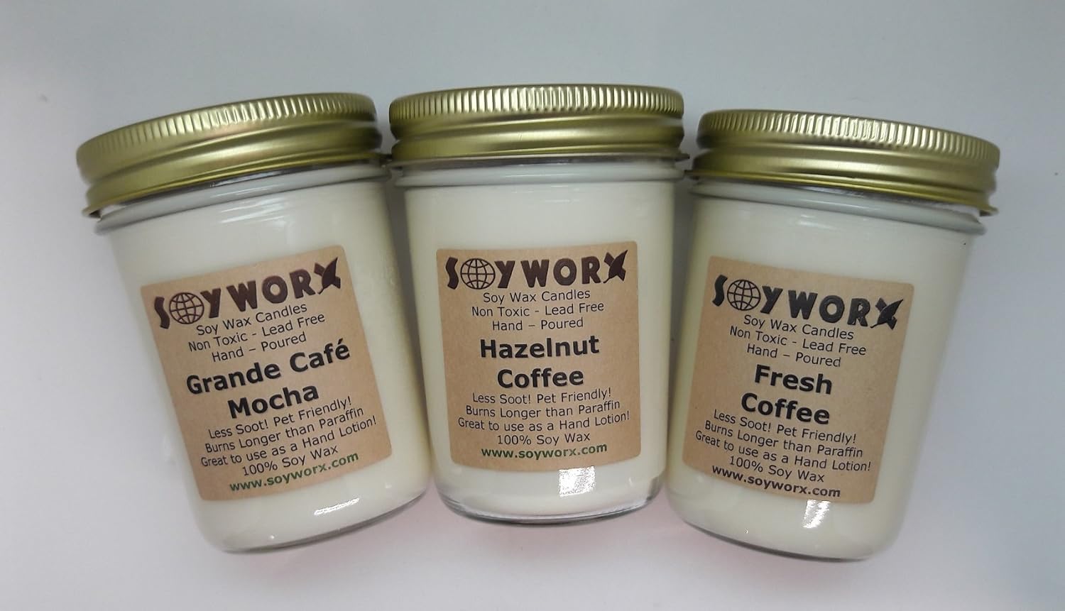 This ready to give gift set features 3 of our best selling coffee fragrances: Fresh Coffee: Traditional cup of joe that will make you want to brew a cup every time you open the lid Hazelnut Coffee: That fresh morning cup topped off with hazelnut creamer. Truly delectable. Grande Café Mocha Your favorite coffee house just fresh brewed a cup of joe and added some mocha sauce to it. Yummy!!! All 3 available in a set to indulge for yourself or give as a great gift!