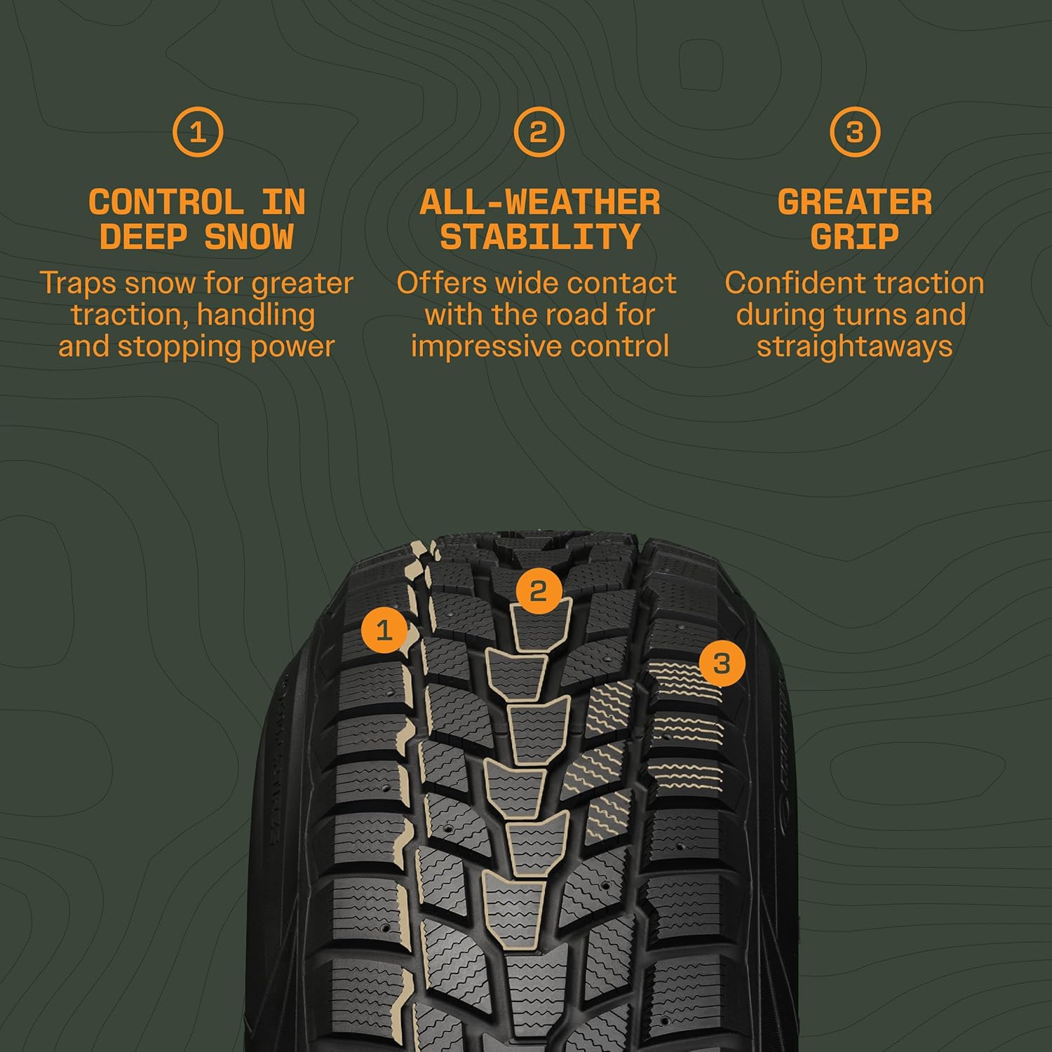 The Cooper Evolution Winter P215/65R17 99T Tire is here to conquer the season's heaviest snowfalls. This tire provides a product for drivers dealing with untreated roads or deep snow. The directional tread pattern provides superior acceleration and braking, and the Cooper Evolution Winter is studdable allowing for extreme performance on ice. The Evolution Winter tire is Severe Weather Rated which is the 3 Peak Mountain Snowflake (3PMS) certified. This means the Evolution Winter meets the required performance criteria in snow testing to be considered severe snow service-rated. The wide contact of the tread sawtooth circumferential center rib enhances stability in all weather conditions. The Snow Groove Technology traps snow in the tread, enhancing grip through snow on snow traction. The Multi-Angled Corrugated Siping provides lots of biting edges in every direction to provide grip and traction on straightaways, or when turning. The Evolution Winter provides stability and confidence when driving through deep snow.