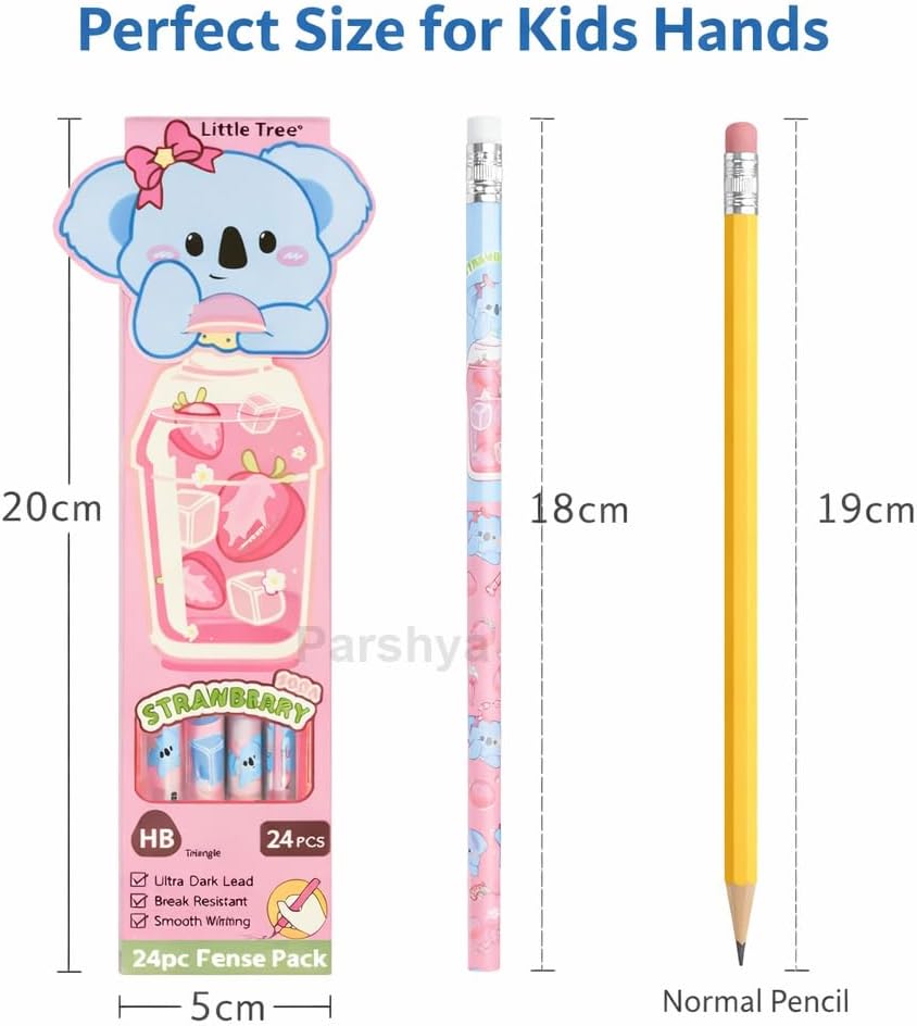 Make learning fun and exciting with the Parshya Cartoon HB Pencil Set for Kids — specially designed for young learners and school students.These high-quality HB pencils provide dark, smooth writing that helps improve handwriting clarity and confidence in children. The break-resistant graphite core ensures longer usage with less sharpening, while the ergonomic triangular grip teaches kids the correct writing posture and prevents hand strain.The pencils are made using non-toxic and odor-free paint, making them completely safe for everyday school use. Each set includes 24 beautifully printed cartoon pencils and a durable storage case, keeping pencils organized inside school bags.This stationery set is not only perfect for school work and drawing practice but also an excellent birthday return gift and back-to-school gift option for kids.Suitable for:✔ Nursery & Kindergarten students✔ Primary school children✔ Handwriting practice✔ Art & drawingA perfect combination of learning + fun + gifting.
