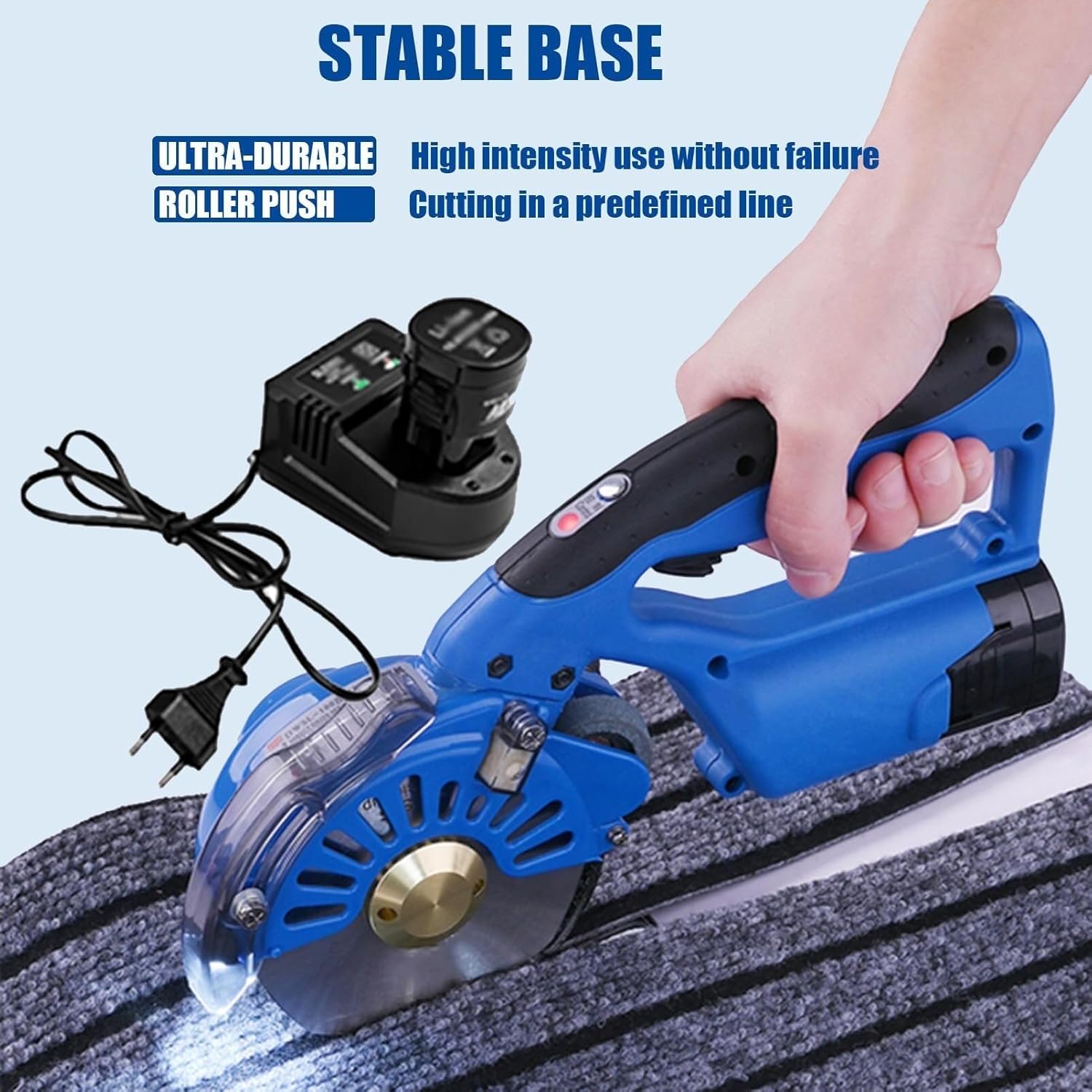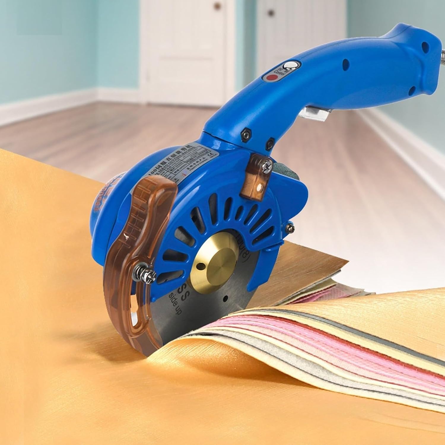 Color: BlueVoltage: 110V-240VInput power: 3.6W-150WBlade size: 100mm/110mm/125mmCutting height: 27mm/32mm/40mmSpeed: 800/1000/1200/1400/1600RPM (5-level adjustable)Package size: 31 x 22 x 14cm/12.2 x 8.66 x 5.51 inchesPackage includes:1 x Fabric cutting machine2 x Lithium battery pack
