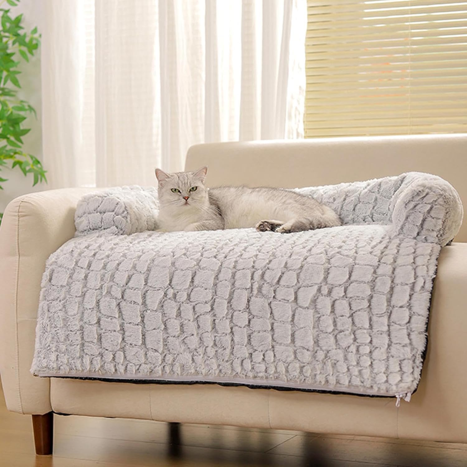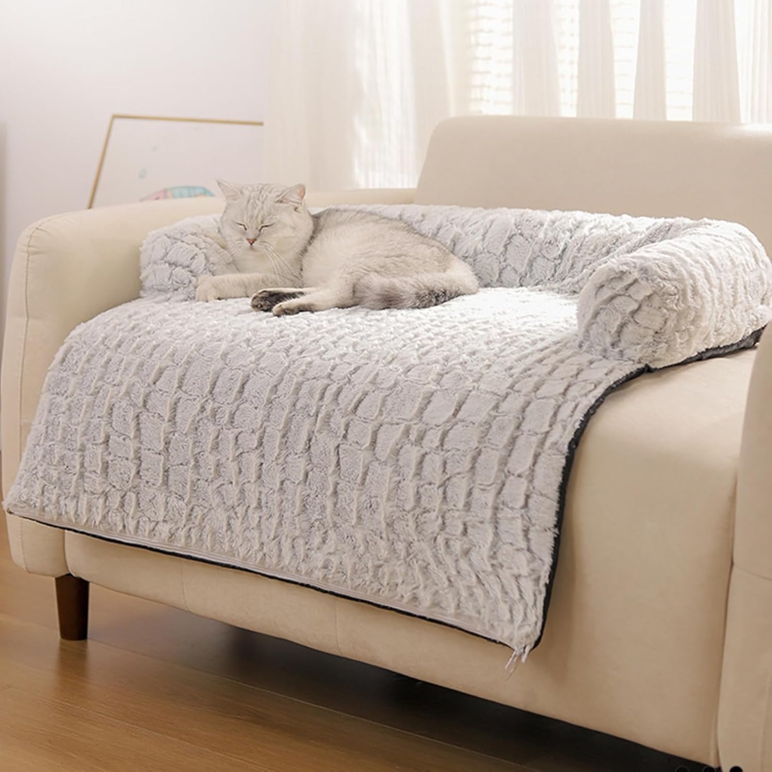 The Plush Pet Couch Cover provides a removable and washable design, ensuring easy maintenance and long-lasting use while protecting your furniture from pet hair and daily wear. Its non-slip feature keeps the cover securely in place on your sofa or any seating area, enhancing comfort for indoor relaxation, nighttime sleep, and daily rest. This furniture protector serves as a mat or cover, adapt to various spaces, including the home, kitchen, bedroom, porch, patio, balcony, nursery, or play area, making it ideal for apartments. This plush couch cover is an addition to any living space where pets and comfort coexist seamlessly.Specifications:Product Name: Sofa Dog MattressProduct size: about 80x75cm/31.5x29.53 inchesWeight: 850gMaterial: Fleece, PP CottonPack List:Dog bed for couch*1Note:Due to different lighting and screen settings, the item color may be slightly different from the picture.Due to different manual measurements, please allow a 1-2cm difference in size.