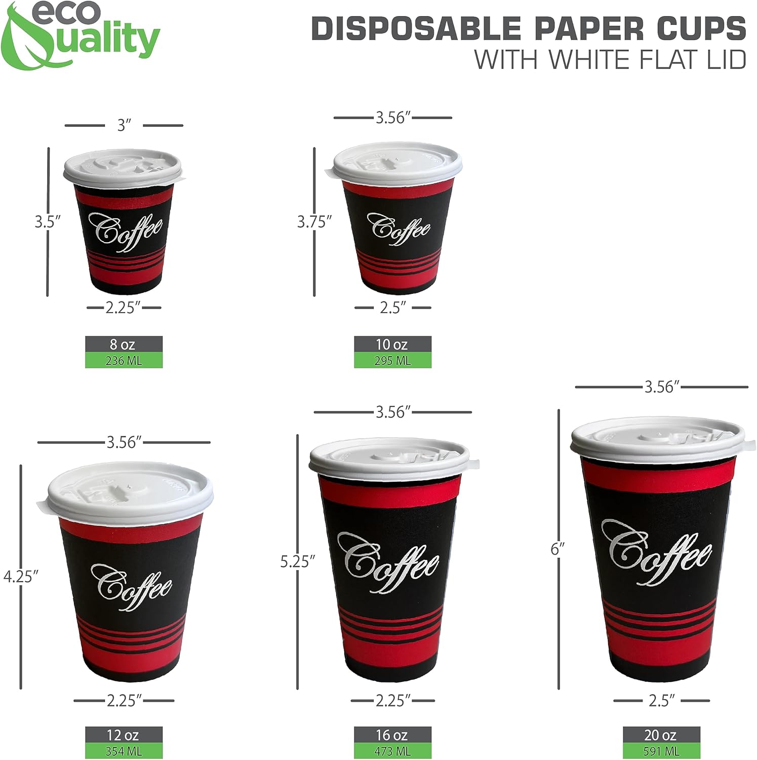 12 oz Disposable Paper Cups with White Flat Lids✔ Disposable and Biodegradable✔ Food Safe Lined Interior to prevent leaking✔ Easy to dispose and reuse✔ Stackable design allows for easy storage✔ Tear Back White Flat Lids allow for easy drinking✔ Stylish White Lid included✔ Handles temperatures up to 200+ Degrees✔ Keeps Liquids Hot✔ Great for Hot and Cold Beverages✔ Utilized by many Schools, Churches, Offices, Events, Catering and Parties★ Leak Free★ Rolled Rim and Tapered sides for easy holding★ Number one choice for Hot Tea, Coffee, Lattes, Hot Chocolate and more!★ Microwave Safe★ Easy Cleanup