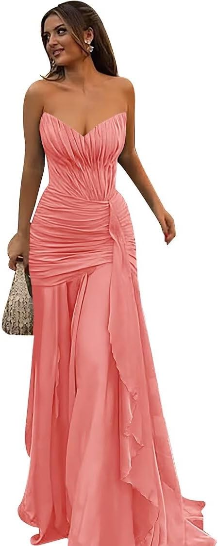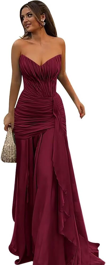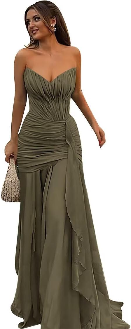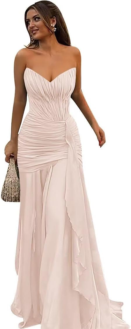 | Embellishment Feature | Chiffon Bridesmaid Dress, Chiffon Prom Dress, Long Formal Dress, Strapless Evening Dress |