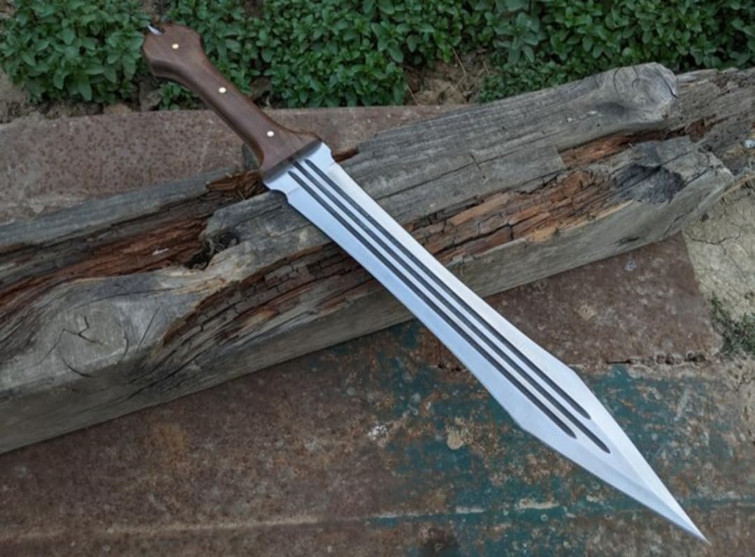 We Also Accept Custom OR Bulk Quantity Orders. Specifications BRAND New Handmade J2 Steel Full Tang Double Edge Hunting Sword With Leather Sheath By Empire Industry. HANDLE MATERIAL AWESOME Rose Wood. Overall Length: 22.00 Inches Blade Length: 15.00 Inches Handle Length: 7.00 Inches Blade Thickness: 3 - 4 mm J2 Steel Blade Having Sharp Edges. Hardness Of The Blade Is 57-60 HRC. SHEATH Well Hand Stitched Cow Hide Leather Sheath QUALITYSTANDARDS Our Damascus blades are made from high quality non-stainless steels which rival or exceed any Damascus blade made from the 10 series with 15N20.Our Damascus combination has taken years to perfect and has been tested under a variety of application which will offer professional performance in categories of toughness, strength (lateral stress) and edge honing and holding ability. And No two blades are exactly same because of its unique pattern. In a 5 spot Rockwell test our blades will average near or close to 58 which offers a perfect balances between its toughness and strength. Our blades due to carbon content need to be regularly treated with wax and/or 3 in 1 oil to maintain its superior quality. Questions If you have any question feel free to send us message we aim to answer all questions within 12 hours. Feedback If you are not satisfied with our service please contact us before leaving any negative or natural feedback. We will resolve all issues as quickly as possible. Disclaimer We are not responsible for any injuries associated with the use of our tools. Our products are intended for legal use only by responsible buyers. Therefore, we will not sell our products to anyone under the age of 18.
