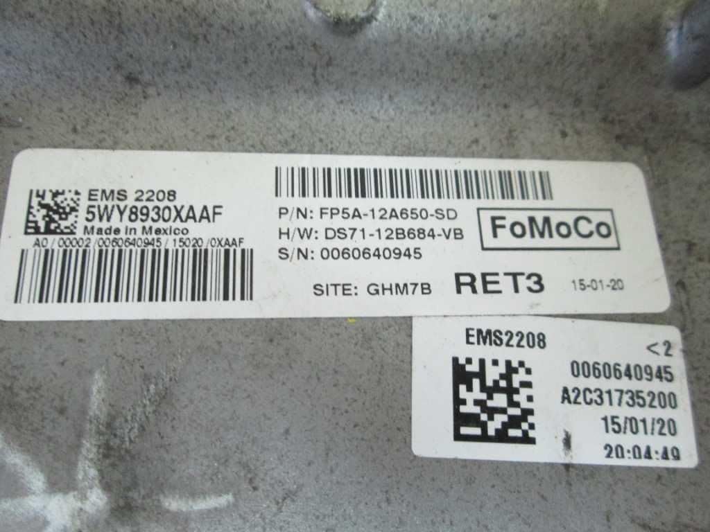 "> Description Donor Vehicle VIN: Model: Year: 0 Mileage: 0 (0 = not available or ) Stock Number: SSD699 Store Number: 1 Part Detail Part Grade: A Part Category: U Part Placement: Notes: FP5A12A650SD This part will fit these makes and models with these options FUSION 14-16 Electronic Control Module; 2.0L, VIN U (8th digit, )