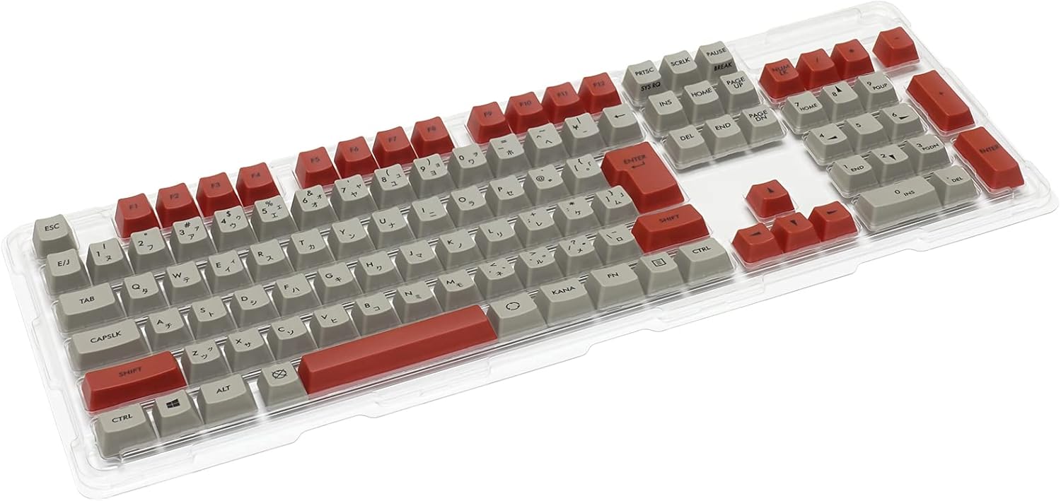 Majestouch/Majestouch Tenkeyless Series Common Color Key Cap Set! Japanese 108 keys, with katakana, 2 tone retro basic The Retro Basic Key Cap is a classic retro color scheme key cap set that looks like somewhere. The gray base key cap has only a part of the function and numeric keypad. In addition, the font and design have been given a vintage look with the font and design. Replace your keyboard key cap and immerse yourself in the nostalgy of old time.