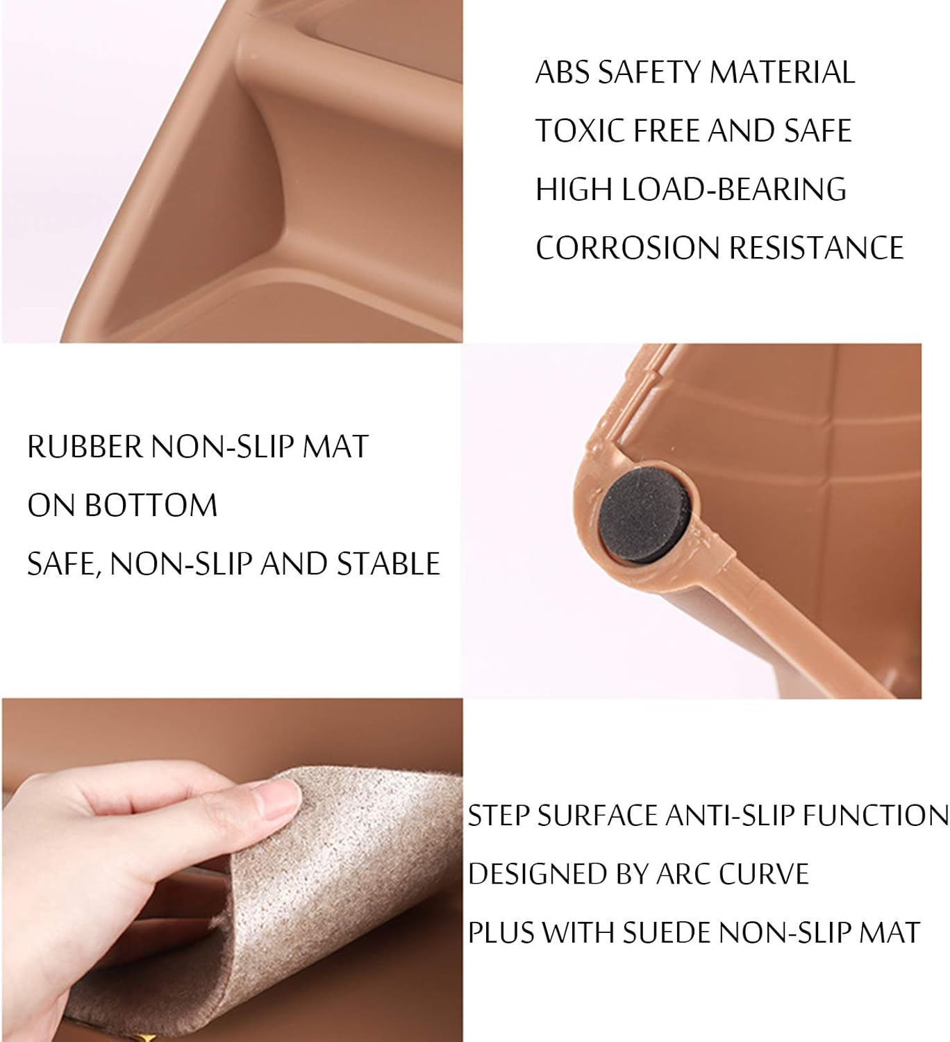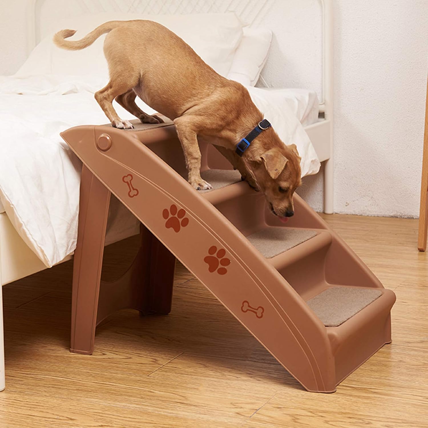 The folding plastic pet stairs help your pet get to their favorite resting spot or in and out of your vehicle.The 4-step design has built in safety features and is perfect for puppies, kittens or older dogs or cats that need a little help to get to higher places.Your pet can climb up and down with confidence. The light weight stairs are easy to store and perfect for travel.Product Features▲ Lightweight and portable▲Helps pets reach their favorite places▲Could be used indoors or outdoors▲Foldable and easy storage▲Built-in safety side rails▲Non-skid and Sturdy▲No assembly requiredProduct DetailsStyle: 4 stepsProduct Dimensions: 24"L x 15"W x 18.7"HIndividual Step Dimensions: 5.9"D x 18.7"W x 4.9"HMaterial: Thick ABS materialWeight: 3.5KGPacking List:1*Pet Folding Lad