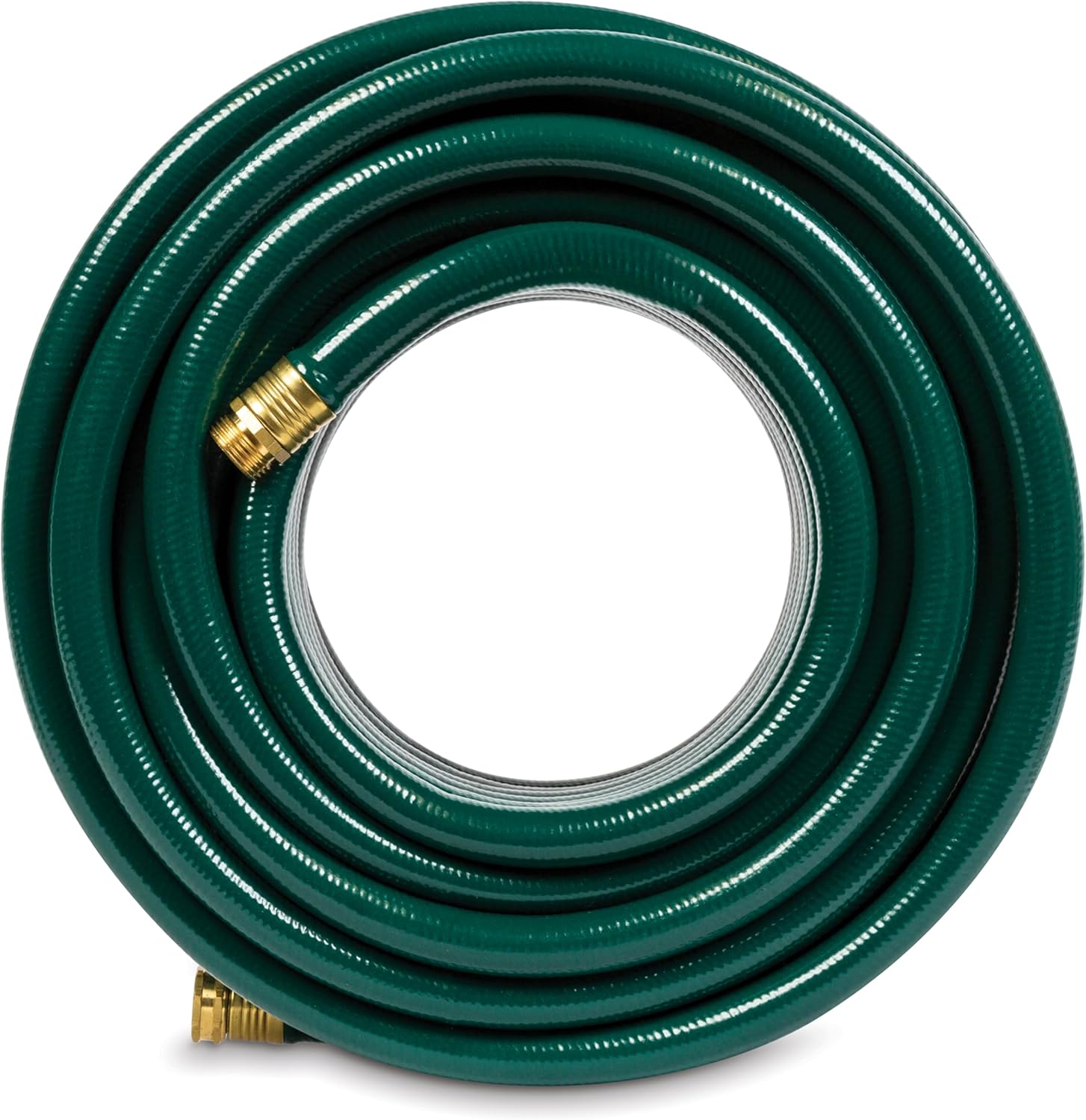 Product Description The Gilmour Flexogen 3/4 in x 100 ft garden hose features large, comfortable, crush-proof, brass couplings. Ergonomically designed for comfort, a pliable grip on the male end provides a secure hold, making it easier and quicker to attach sprinklers and nozzles. This flexible garden hose also features patented 8-layer construction for superior durability, flexibility and kink resistance. A protective collar provides added protection from kinks at the spigot. With a burst strength of 500PSI, pros can count on this flexible hose to curve without kinking, connect without leaking and hold up, season after season. No kink garden hose has undergone rigorous testing to ensure its able to tolerate water pressure fluctuations, rough and rocky terrain exposure to the elements. Any professional gardener will tell you, the right tools can make a world of difference when maintaining your lawn or garden. Trust Gilmour to provide reliable, comfortable watering solutions to turn any day into a better day. Amazon.com Exceptionally strong, durable, flexible, and lightweight, this Flexogen hose is built to last. Designed to withstand 500 PSI water pressure without bursting, its patented eight-layer, tire cord-reinforced construction provides outstanding strength and endurance. A special sealed compound--flexible even in the harshest cold weather--coats and protects the hose from rain, snow, mildew, cuts, and abrasions. The Flow Guard Plus collar keeps the hose extended and kink-free, so no matter how much you tug and stretch it, water flow is never interrupted. An O-ring seal prevents leaks, and crush-resistant, brass couplings keep their shape impeccably even after years of use. The hose also winds and stows easily. It even floats for trouble-free retrieval from pool or pond. Measuring a hefty, larger-than-standard 3/4 inches in diameter and 100 feet long, this sturdy garden tool is made in the USA, and comes backed by a full, lifetime-replacement guarantee. P.when('A').execute(function(A) { A.on('a:expander:toggle_description:toggle:collapse', function(data) { window.scroll(0, data.expander.$expander[0].offsetTop-100); }); }); From the Manufacturer Gilmour's Flexogen is the hose that has long set the standard for quality in garden hoses. Recognized by consumers and trade allike, it offers the ultimate in quality and value. It is the last hose you'll ever buy! See more