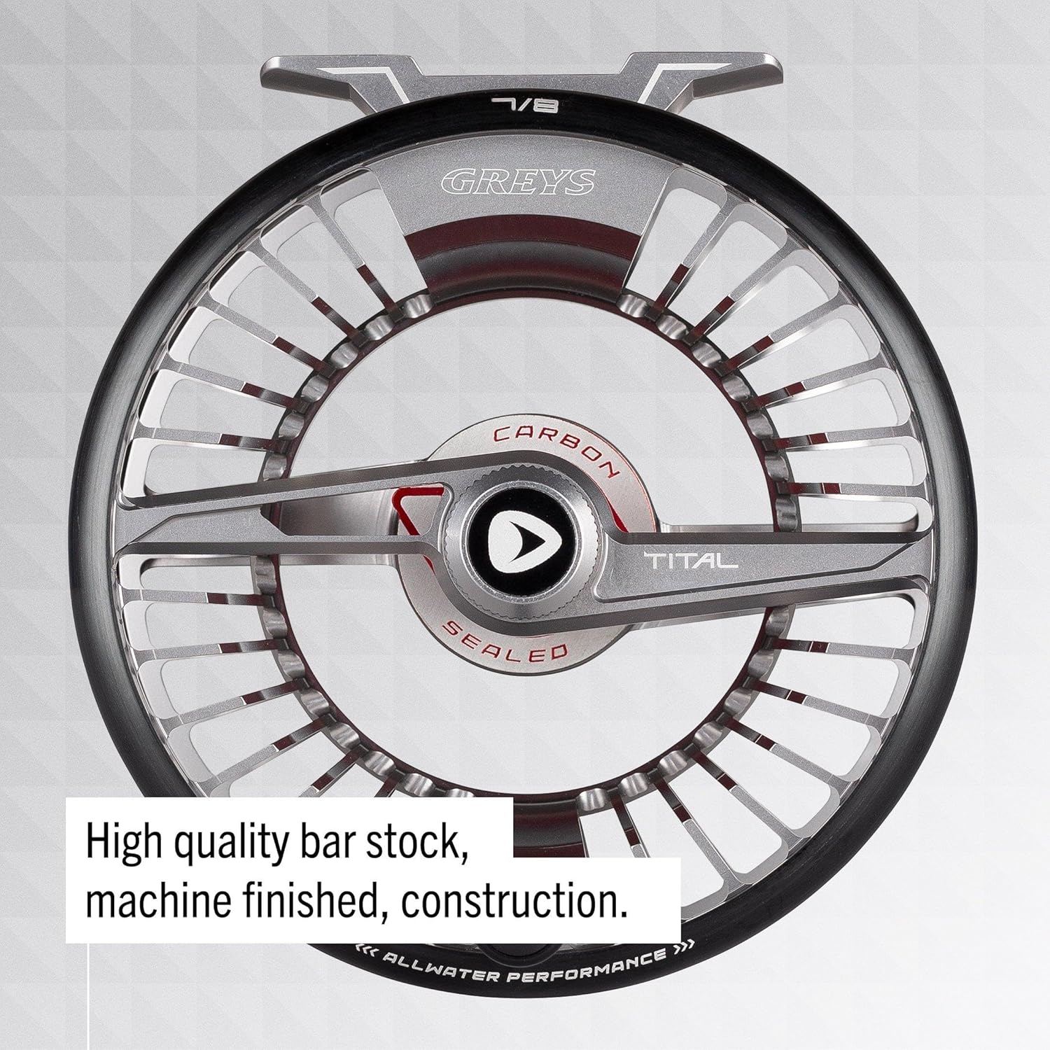 Greys all new flagship fly reel is fully constructed in bar stock aluminium and fitted with either a fresh or saltwater sealed disc drag system. As part of the new Greys fly reel design concept, it shares many design traits with the other reels in the range, including a stunning large arbour design, simple secure spool release, high level manufacturing and finishing techniques, and high performance drag system combined with the increased impact resistance of full barstock construction.