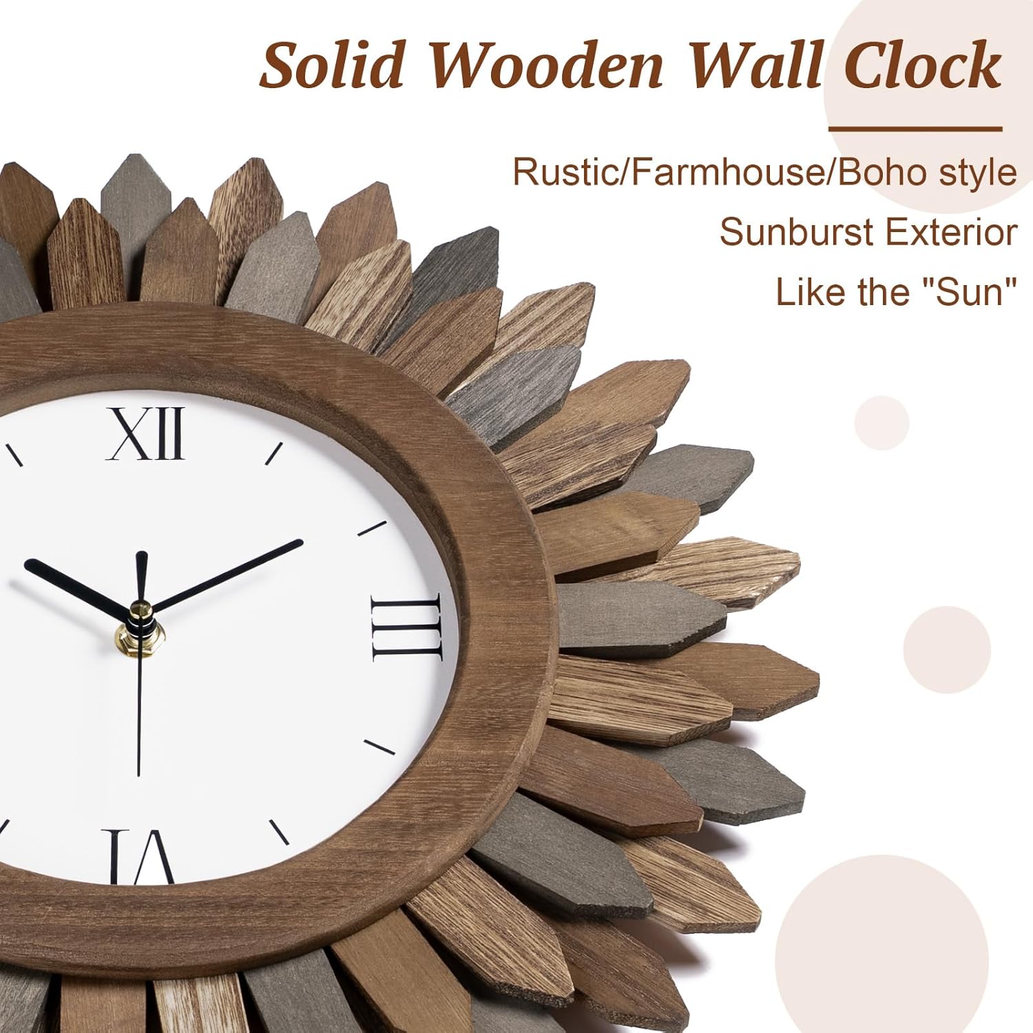 | Additional Features | Boho wall decor, Silent Clock, natural solid wood & no need assembly |