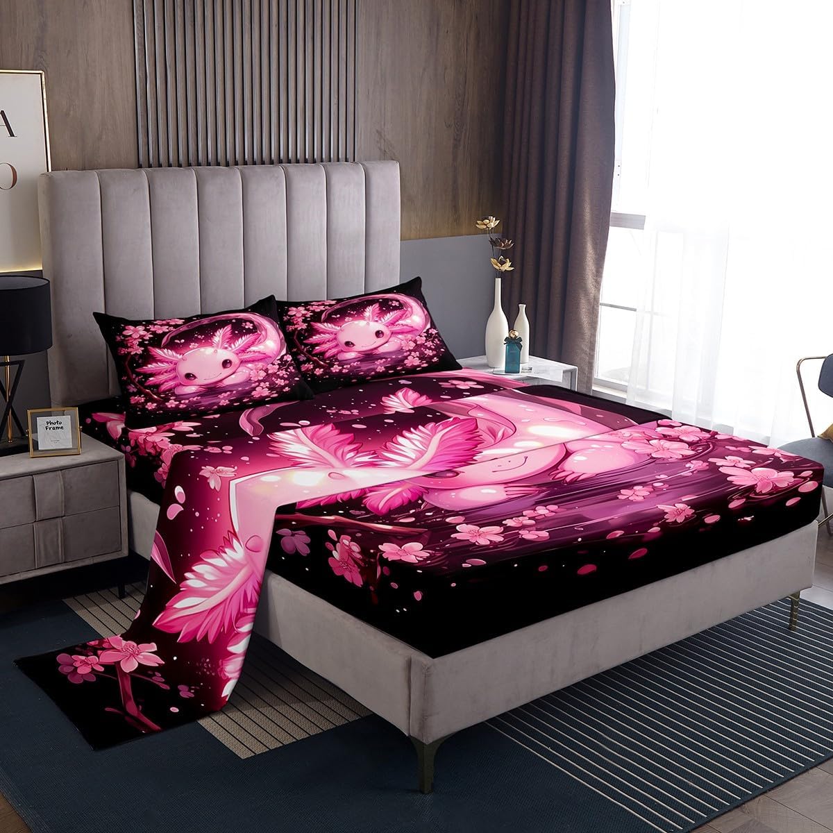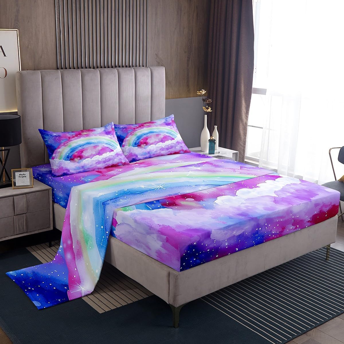 Our bed sheet is made of polyester fabric, lightweight and soft; stylish design is very suitable as room decoration for boys and girls; keep warm in winter and cool in summer; create a comfortable sleeping environment to make you fall asleep all night Range of size 1 twin fitted sheet 39 inch x 75 inch x 16 inch and 1 twin flat sheet 66 inch x 96 inch and 1 standard pillowcase 20 inch x 30 inch 1 full fitted sheet 54 inch x 75 inch x 16 inch and 1 full flat sheet 81 inch x 96 inch and 2 standard pillowcase 20 inch x 30 inch 1 queen fitted sheet 60 inch x 80 inch x 16 inch and 1 queen flat sheet 90 inch x 102 inch and 2 standard pillowcase 20 inch x 30 inch 1 king fitted sheet 78 inch x 80 inch x 16 inch and 1 king flat sheet 90 inch x 106 inch and 2 standard pillowcase 20 inch x 36 inch