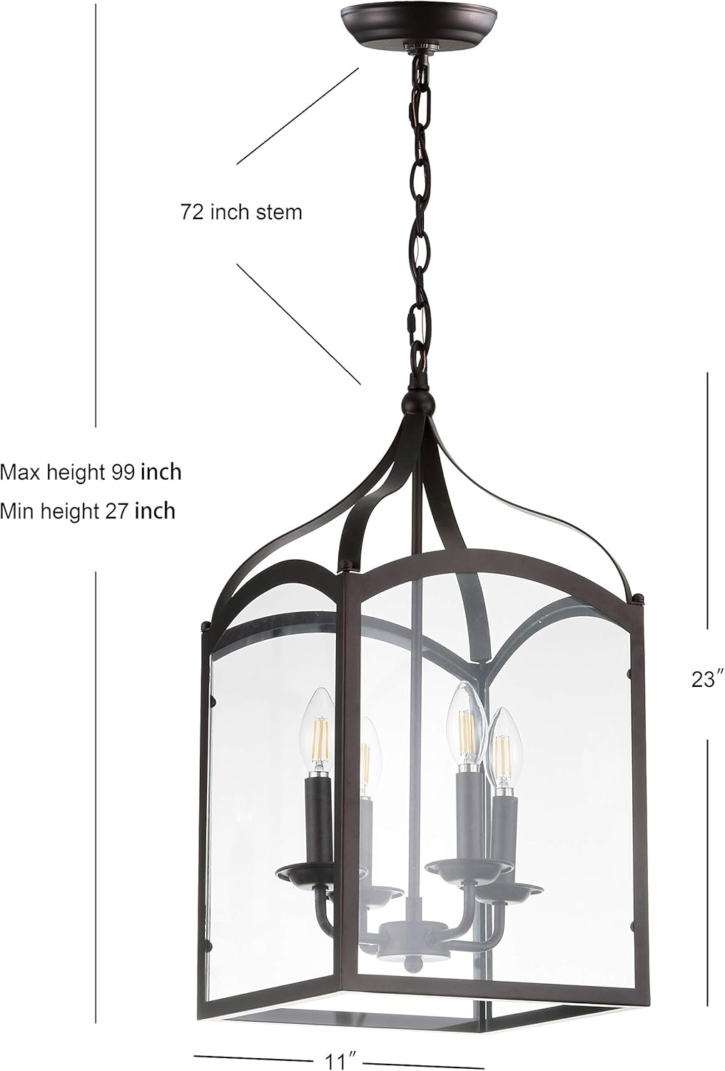 Clean and elegant, this pendant lantern light has a gracious style with a cage-like design that features gentle curves. Finished in bronze with four lights, this fixture is great anywhere, but looks fantastic welcoming you home in a foyer space. With an adjustable drop from 27"-99" it can be sized to fit any height ceiling.