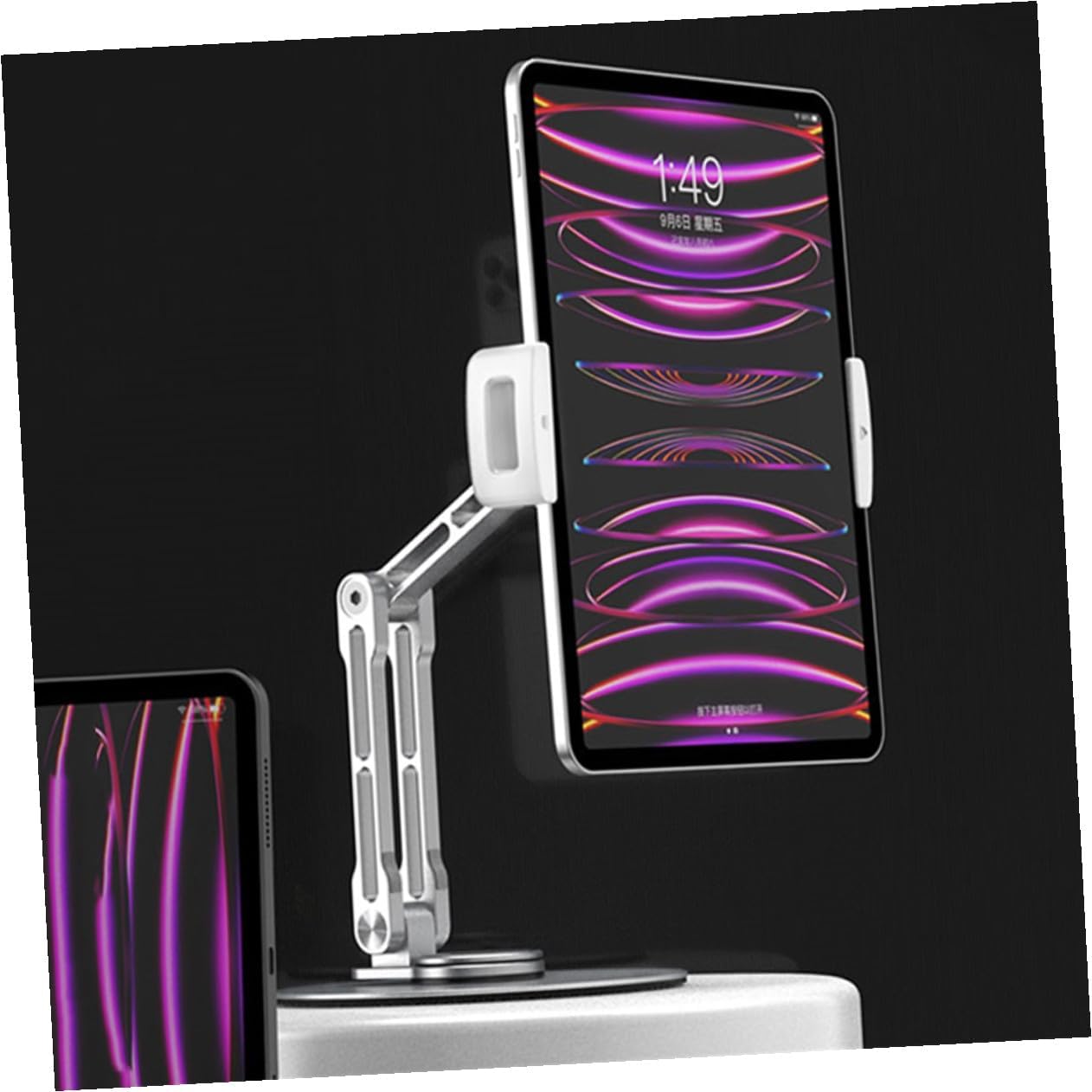 Package Include 1 x Tablet Holder Features -Product Info:Aluminum alloy flat plate bracket - Size: 26.00X11.50X11.50cm/10.22X4.52X4.52in -Material:ABS, aluminum alloy, silicone -Clamp adjustable range: 13.5-26.5cm/5.31-10.43in foldable tablet stand - Color: Silver - Humanized design, adjustment, this tablet stand is easy to meet your different needs tablet stands. - workmanship, reasonable structure, professional and practical, can bring you convenience folding tablet holder. - Manufactured with sturdy ABS, aluminum alloy, silicone material, which is safe and reliable for use. - The stable and reliable design of the stand ensures that your tablet stays securely in place, even when adjusting the angle or position tablet accessories. - The foldable design of the stand makes it easy to store and transport, making it a convenient accessory for both home and travel use tablet stand holder.Goods Descriptionfolding aluminum alloy tablet stand With a anti-slip bottom design, the tablet holder can be placed on the desktop stably.tablet holder for room The tablet holder has a reasonable structure, can easily touch the screen without worrying about the tablet falling.tablet mount for desk You can share it with your friends and family as it is a practical tablet stand