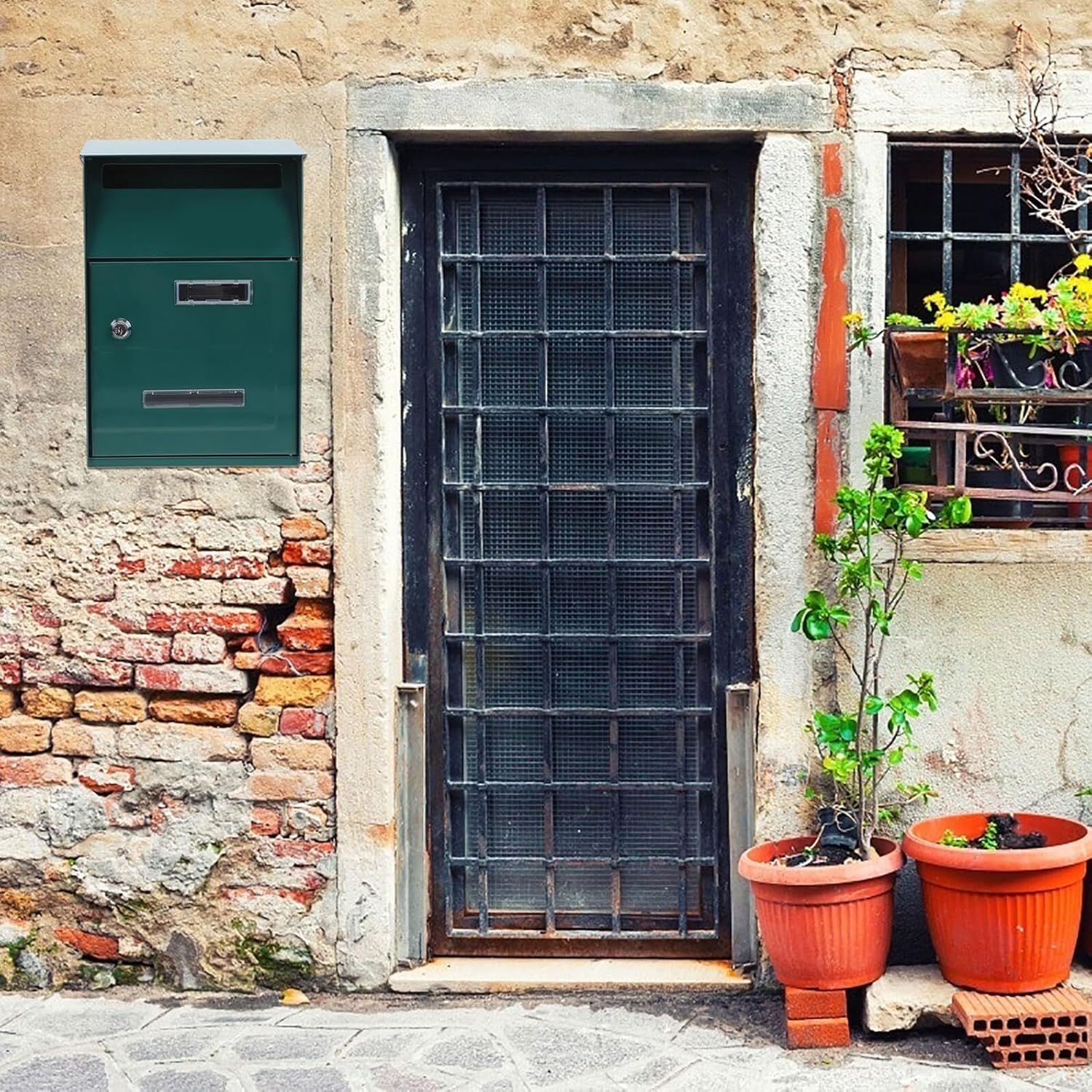 Package Include 1 x letter box with lock Features - Color: Green. - Size: 32.80X20.00X9.00 cm/12.89X7.86X3.54 inch. -Product Info:Metal mailbox - Material: Galvanized board. - With its simple design and practical functions, it will win your love well and bring you a good experience vintage wall mount mailboxes. - With a large storage capacity, you can put many mails and letters what you need retro outdoor mailbox. - Can help keep the confidential information of mail and complaint suggestion wall-mounted mailbox. - The appearance design of the product is stylish and generous, decorative and delicate post mailbox. - Made of great quality material, durable and sturdy, and .Goods Informationmailbox for outside and fine workmanship that can ensure its durability and practicability.mailbox wall mounted This product is a letter box with simple and delicate design.mailboxes for outside With wide applicable occasions, perfect for interoffice mailbox, small parcels, suggestions