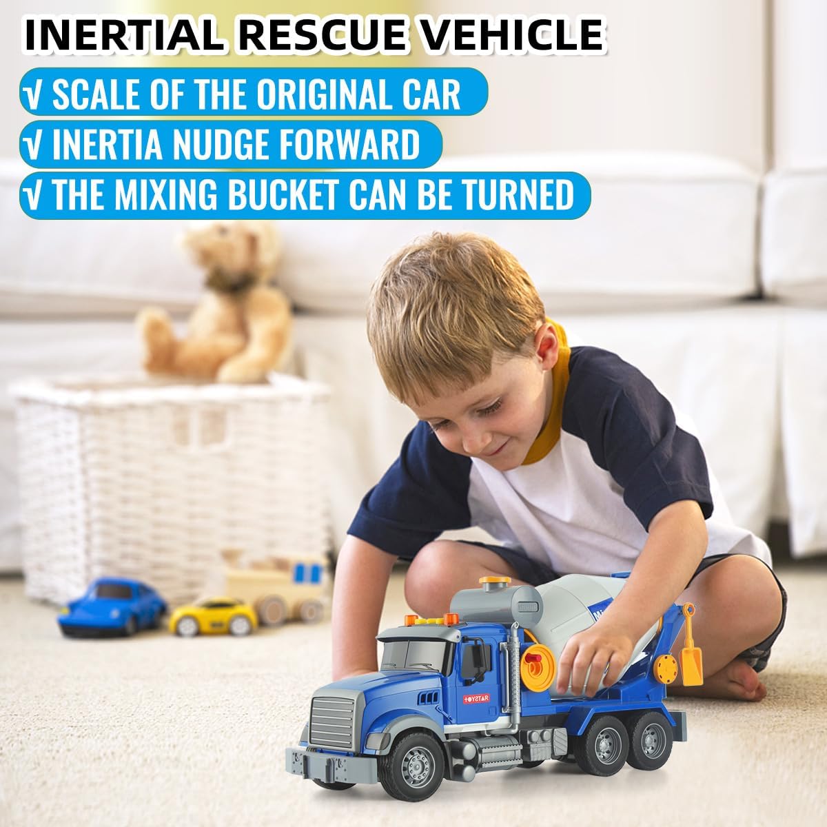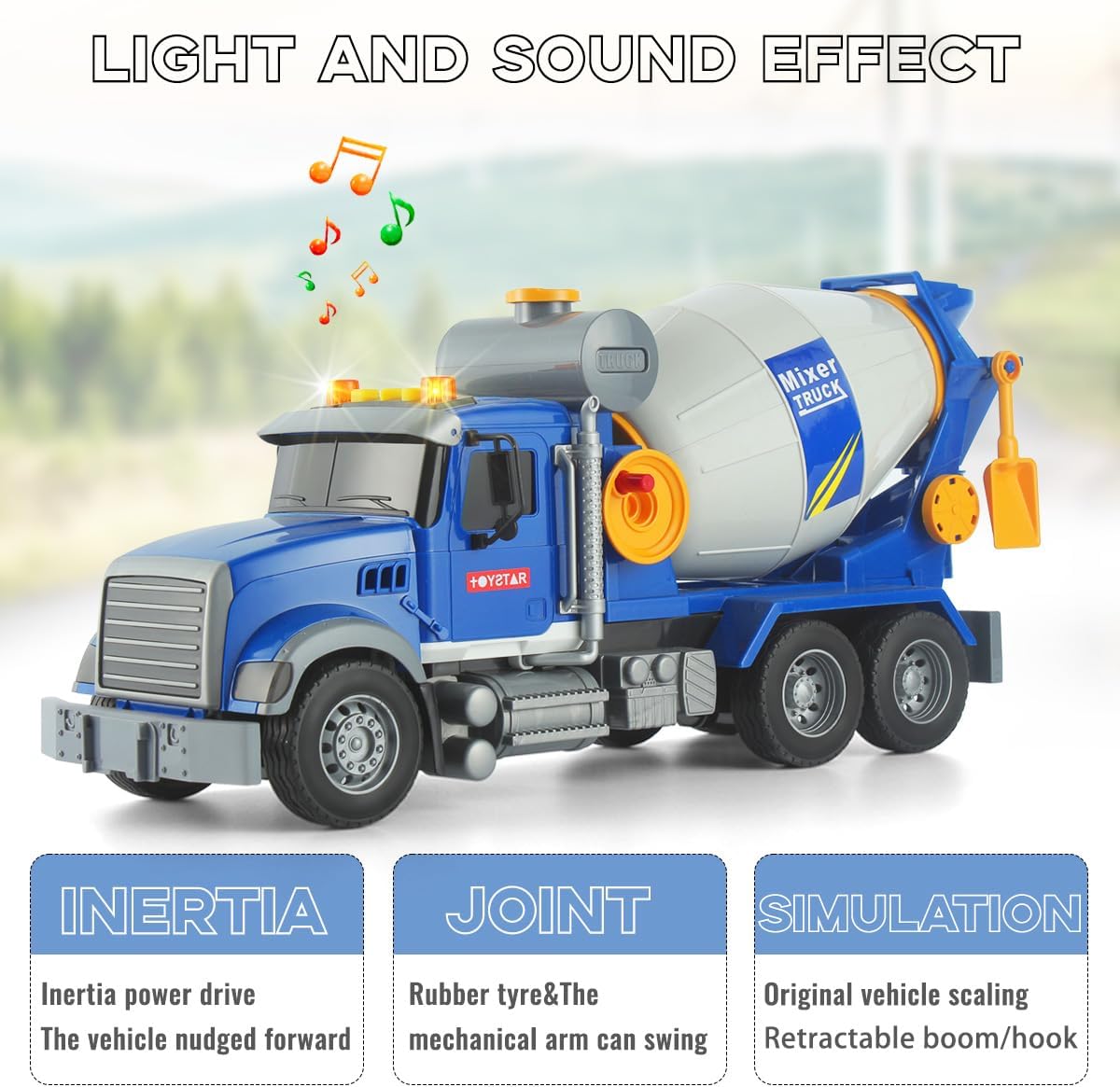 Bring excitement to your child's playtime with this thrilling concrete mixer truck toy, allowing them to imagine the fun of a construction site right at home. Equipped with realistic sounds and flashy lights, the toy will make kids feel like they're in a real construction site. Its large size design enables kids to have better control and operation, enhancing their hand-eye coordination. Made with high-quality and durable plastic material, the toy ensures longevity and long-term use. This concrete mixer truck toy can stimulate kids' imagination and creativity, allowing them to simulate and role-play real construction site scenarios. It has undergone strict safety testing, being non-toxic and safe for children aged 3-7 to play with. Bring endless fun and foster creativity development to your child!