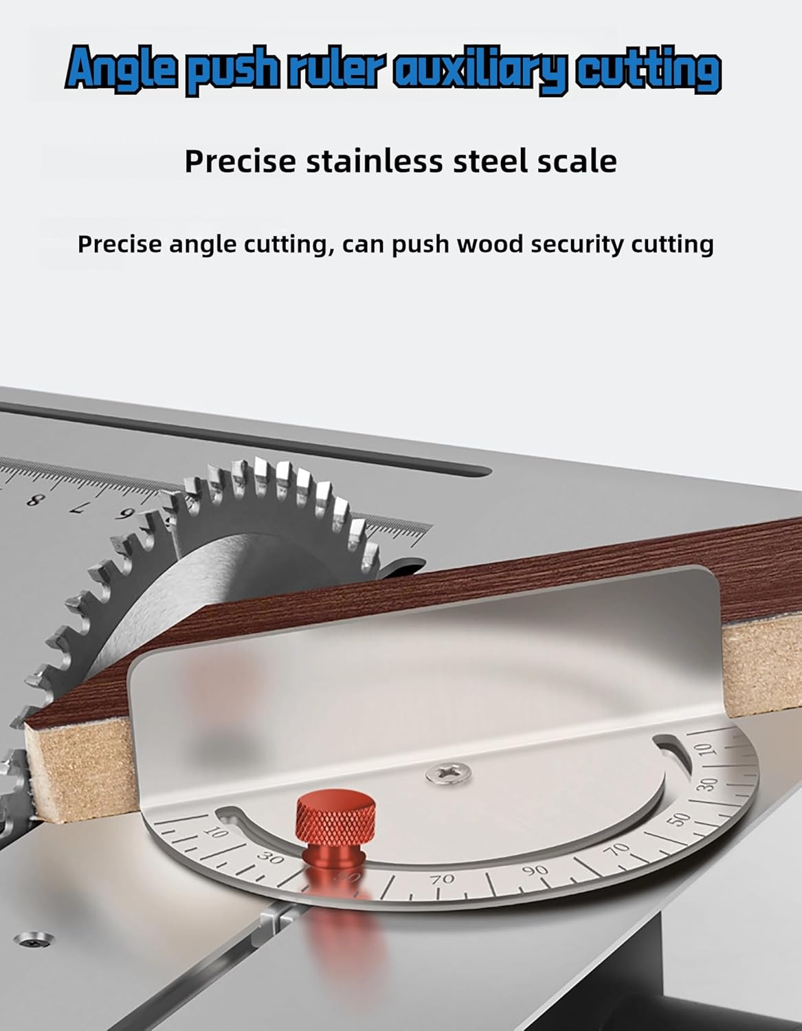 Mini Table Saw, Mini Desktop Electric Saw Cutter, Woodworking Electric Table Saw, Portable Table Saw with Adjustable Cut Depth, Mini Table Saw For Crafts Name: 45° mini table saw Rated power: 1600W Saw blade size: 180mm Dust-free motor: Yes Main unit size: 390x360x240mm Saw height depth: 55mm 45° saw height: 40mm Motor speed: 5000r/min Power supply voltage: 220V/50Hz Features: 1. Designed for use with dust collection bags to effectively absorb motor dust. 2. Transparent dust collection and dust cover to prevent wood chips from running around. 3.55MM cutting depth. 4. The saw blade can chamfer 0-45°, chamfering the required angle. 5. Angle push ruler to assist cutting, stainless steel scale is accurate. 6. Waterproof control switch. Product list: 45° mini table saw and its accessories