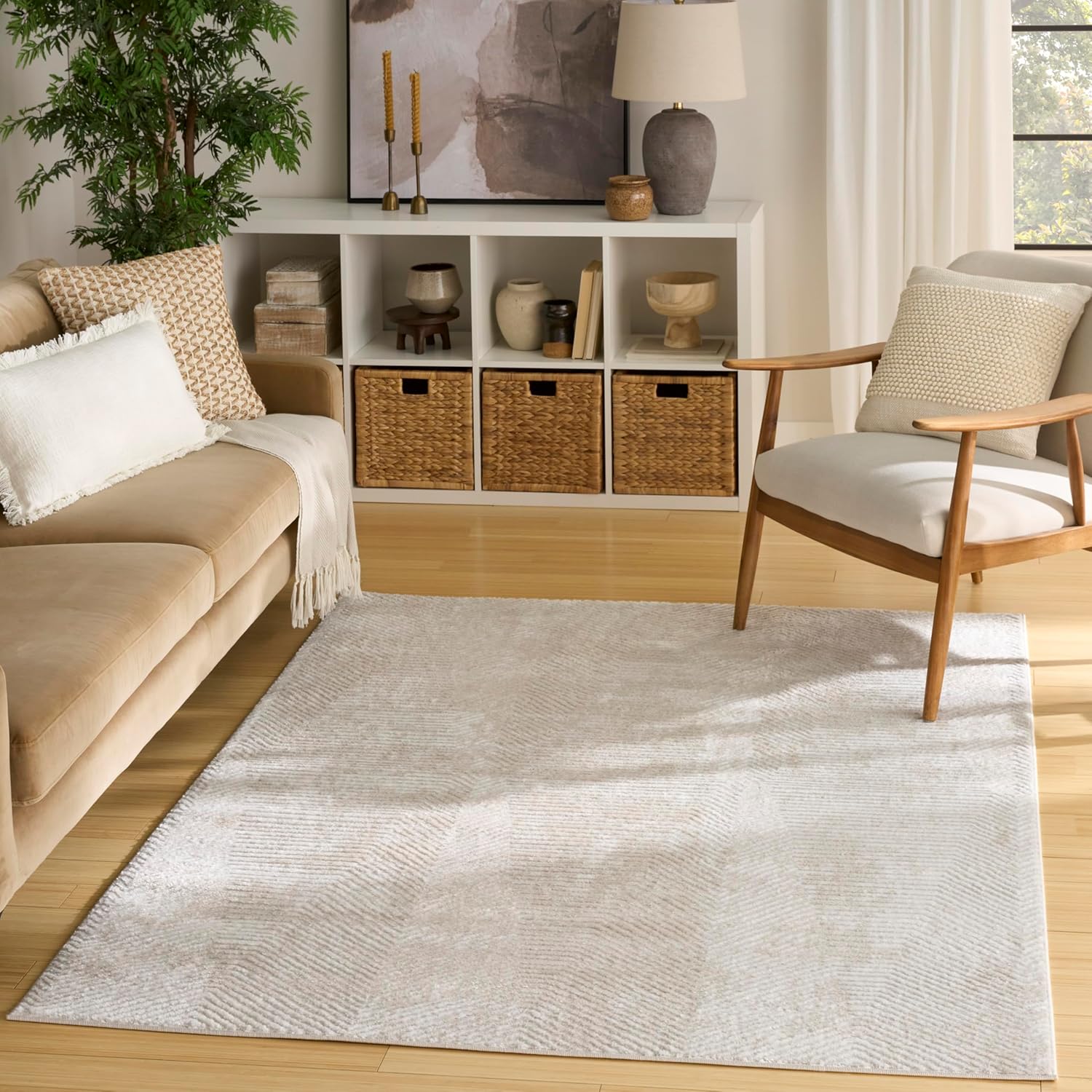Experience the perfect blend of vintage charm and modern artistry with the Dekor collection. These rugs feature an eclectic mix of traditional, abstract, and geometric rugs, all unified by a high-low pile, lustrous sheen, and distressed finish. Dekor is made from a blend of polyester and polypropylene with a flatweave construction that lays flat quickly and is available in a range of sizes – from cozy accent rugs to large living room rugs – that make it easy to decorate every room. Create a striking focal point for your décor with this ivory geometric rug from the Dekor collection. This contemporary design features a linear pattern that forms a series of stylized diamonds, which is enhanced by a high-low texture, lustrous sheen, and distressed finish for added dimension. Made from a blend of polypropylene and polyester for stress-free maintenance.