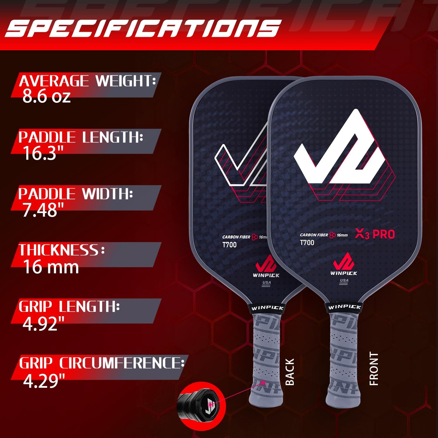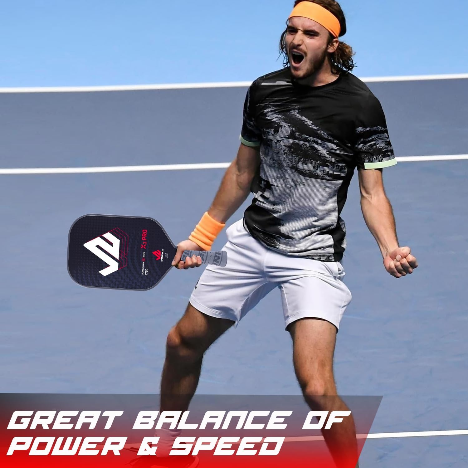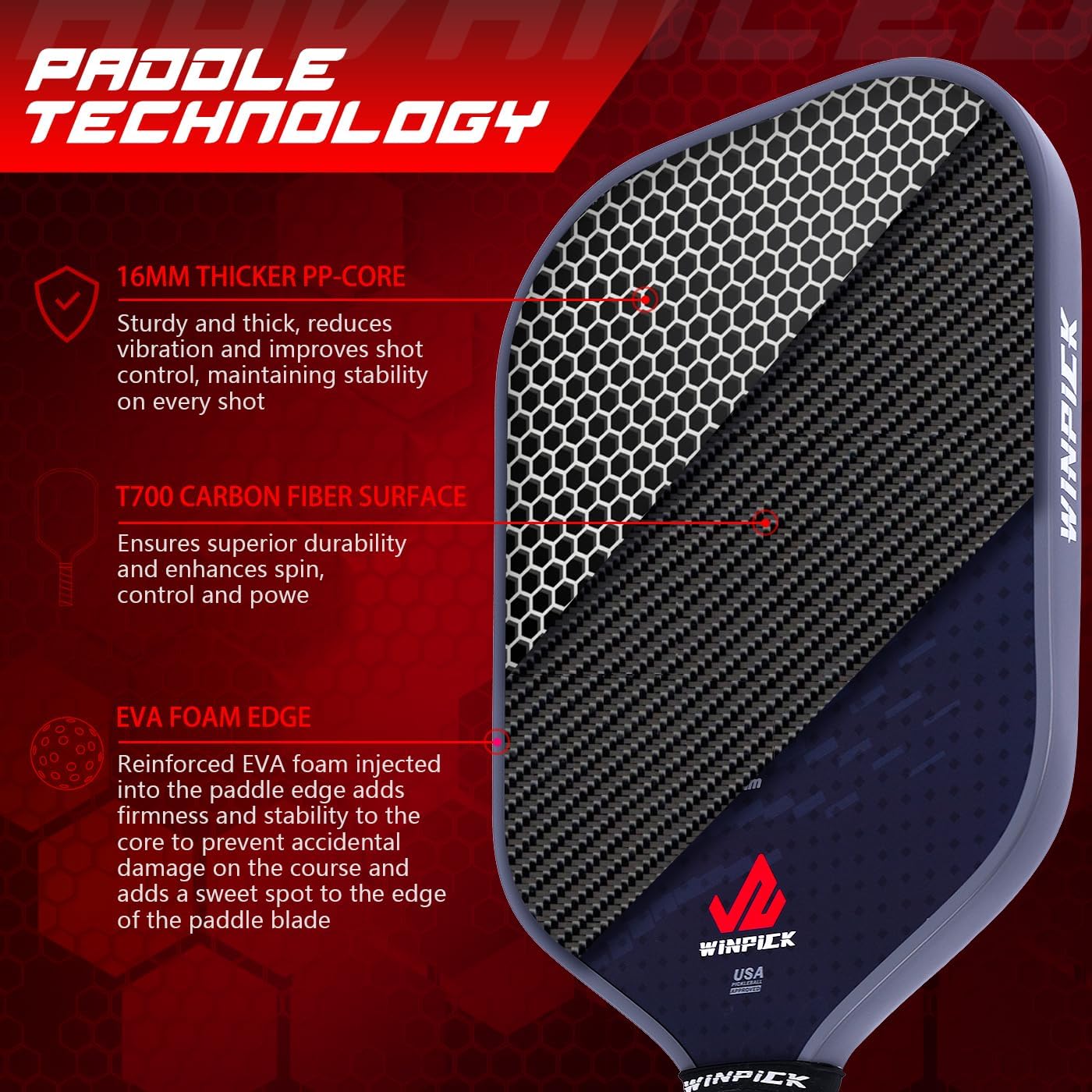 Our advanced pickleball paddle features a T700 carbon fiber face made with Carbon Friction Surface Technology to ensure long-lasting durability and harnesses raw power to deliver incredible spin, giving you the competitive edge you need on the court.