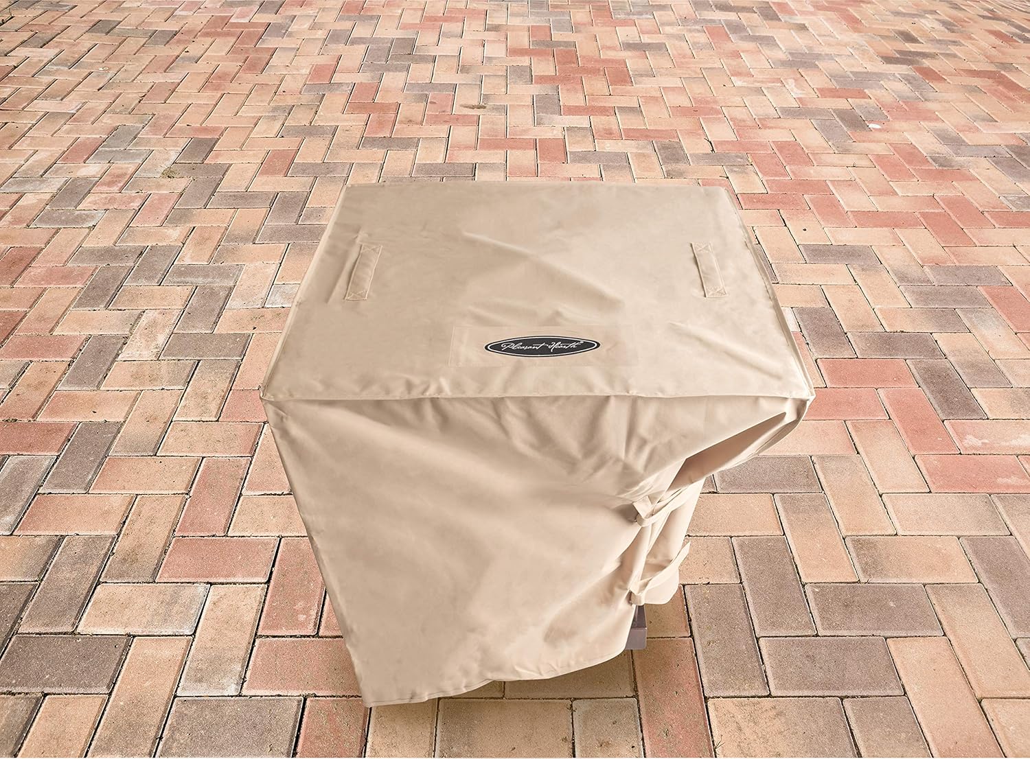 To protect your fire pit be sure you get a fire pit cover. This small square gas fire pit cover consists of 600 heavy-duty denier polyester fabric that keeps fire pits clean, dry & usable for years to come. A hook & loop closure provides a secure fit. Use the durable handles to easily remove the cover. This cover fits Square gas fire pitsup to 30" Wide & 27" Tall.
