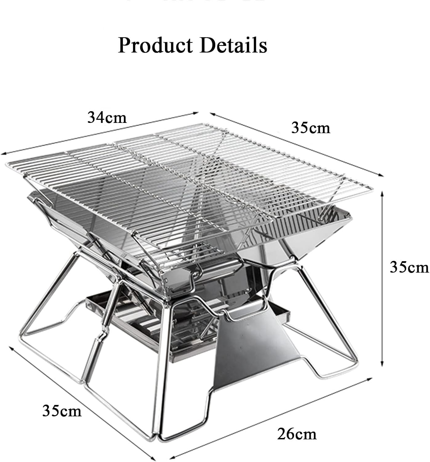 Product Description Small Size And Light Weight: This small size camping grill can be used as a charcoal BBQ grill or wood burning camp stove, portable and easy to set up. Multi-Purpose Foldable Grill: The foldable camping grill can be used as a campfire grill door or campfire pit. You can use it for open fire cooking, or when heading into the great outdoors for adventure. It's great for any occasion. It's a welcome addition to your hiking accessories, camping cookware, bushcraft gear or emergency survival kit! Use Advice 1. After the barbecue is over, wait for it to cool down before cleaning it. 2.Charcoal burning will produce carbon monoxide, please make sure to use it in a ventilated environment and keep good air circulation to avoid poisoning. 3. After burning, the unburned charcoal can be doused with water and can be used again after drying. Please make sure to douse the charcoal with water because it is highly re-ignitable. 4. Do not put heavy objects on the portable charcoal grill to prevent damage and deformation. 5. You can sprinkle a layer of oil on the grill to prevent rusting. 6. After heating, it is normal for the grill to feel slightly compressed Note: The barbecue grill is handmade, there may be some defects are normal, mind the cautious shoot Oh! We are committed to creating high quality and outstandingly designed products. We are a responsible seller, if you have any questions about our products or customer service, please contact us through Amazon. We will do our best to help you solve your problem
