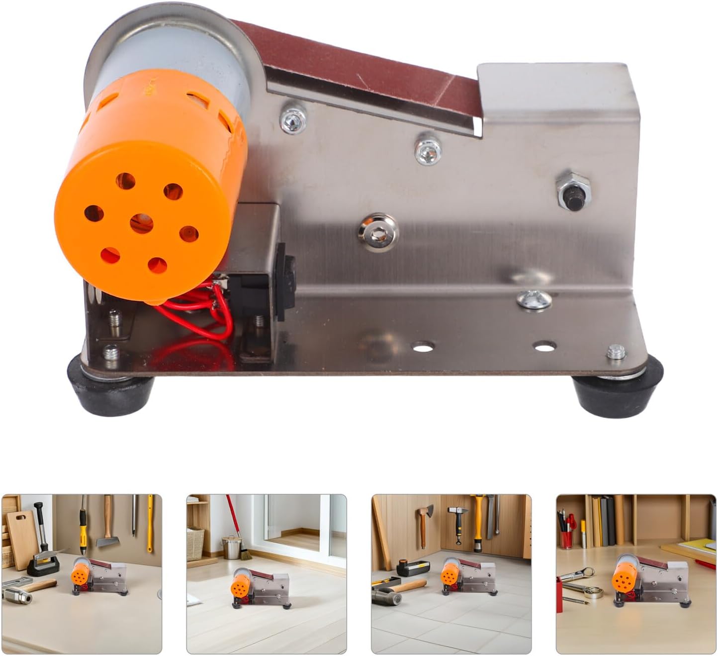 Package Include 1 x Grinding and polishing machine 1 x power supply 1 x grinding wheel 1x polishing wheel 20 x belts 3 x adjustment wrench Features -Color:Silver -Size:17.00X14.00X10.50cm/6.68X5.50X4.13in -Material:Iron Emery -Product Info: Portable Mini Sander -Forward & reverse sanding: workflow with bidirectional controls for portable electric belt sander and tabletop disc sander activities, enhancing flexibility in project execution small electric belt sander -better cooling design: vent holes on the sand belt machine maximize air flow, extending the tool life for extensive electric belt sander and metalworking belt grinder projects mini belt multifunctional electric belt -Advanced motor efficiency: delivering hightorque with low sound, the electric grinder sander is ideal for sensitive mini belt sanding machine tasks, allowing longer operation without overheating issues handheld polishing tools -Reliable build quality: stainless steel construction and antivibration rubber feet ensure solid performance for belt disc sander and small household belt sander usage in varied environments portable belt sanderGoods Descriptionportable belt sander Small electric belt sander units like this sanding machine belt are ideal for edge deburring machines, tabletop disc sander duties, and mini sander for wood detailing.electric mini belt Meet demanding metalworking belt grinder and craft mini sander needs with ease.mini sander for multifunctional belt sander abilities handle polishing and grinding machine requirements, portable grinder polisher work, and intricate micro belt sander projects