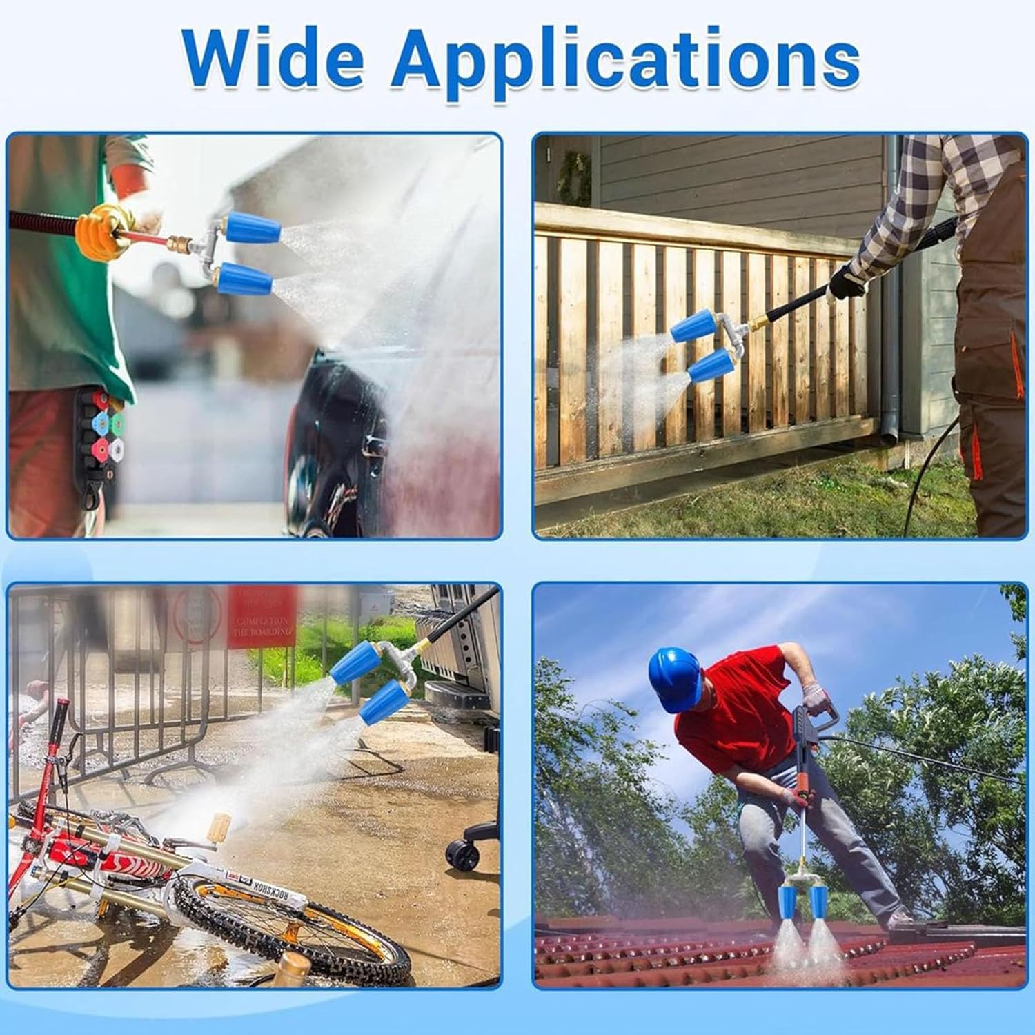 [Easy Connection] Featuring 1/4 inch quick connector, it is easy and convenient to connect and disconnect this pressure washer tip to your pressure washer. [Powerful Pressure] Delivering a pressure rating of 4000 PSI, this pressure washer rotating nozzle provides outstanding cleaning performance, tackling even the toughest and grime. [ Material] The pressure washer nozzle is made of brass with ceramic core, offering excellent erosion and no leakage. 1. [Dual Nozzle] The upgraded dual nozzle increases water , expands the cleaning range, and effectively improves your work efficiency. 2. [Powerful Pressure] Delivering a pressure rating of 4000 PSI, this pressure washer rotating nozzle provides outstanding cleaning performance, tackling even the toughest and grime. 3. [ Material] The pressure washer nozzle is made of brass with ceramic core, offering excellent erosion and no leakage. 4. [Easy Connection] Featuring 1/4 inch quick connector, it is easy and convenient to connect and disconnect this pressure washer tip to your pressure washer. 5. [Wide Applications] Suitable for a variety of cleaning tasks, this pressure washer nozzle can be used for cleaning floors, driveways, wall, decks, etc. Specification: Item Type: Pressure Washer Dual Nozzle Material: Brass, Ceramic Maximum Working Pressure: 4000 PSI Rate: 4.0-6.0GPM Maximum Working Temperature: 140℉ 60℃ Quick Connector Size: 1/4 Inch Nozzle Hole Size: Approx. 2.0mm / 0.08in How to Use: Direct installation and use. Package List: 1 x Pressure Washer Dual Nozzle Pressure Washer Tip, 1/4 Inch Quick Connector 4-6GPM 4000PSI Pressure Washer Dual Nozzle for Lane