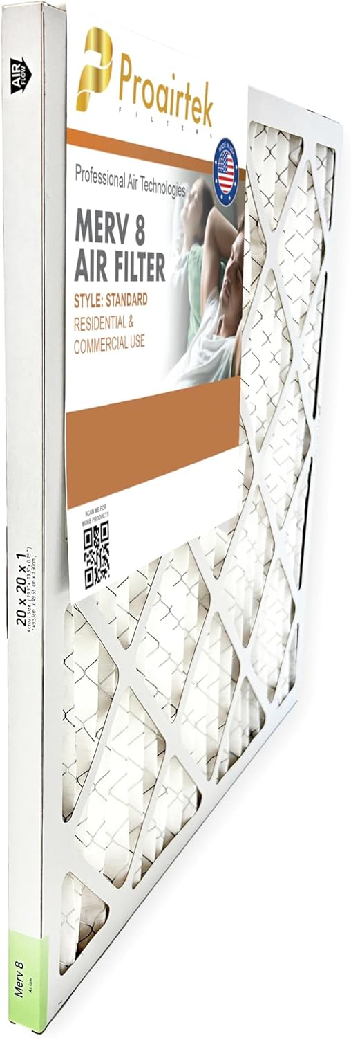 Proairtek AF20201M08SWH Model 20x20x1 Pack of 4 Air Filters, MERV 8; Ideal for Anyone Wanting Clean, Crisp Air in Their Home Key Features: - Pack of 4 Air Filters - MERV 8 - Ideal for Anyone Wanting Clean, Crisp Air in Their Home - Offers Enhanced Airflow and Efficiency - Better Capture Coverage, and Provides Consistent, High-Performance Filtration Specifications: - Item Dimensions: 20 x 20 x 1 inches