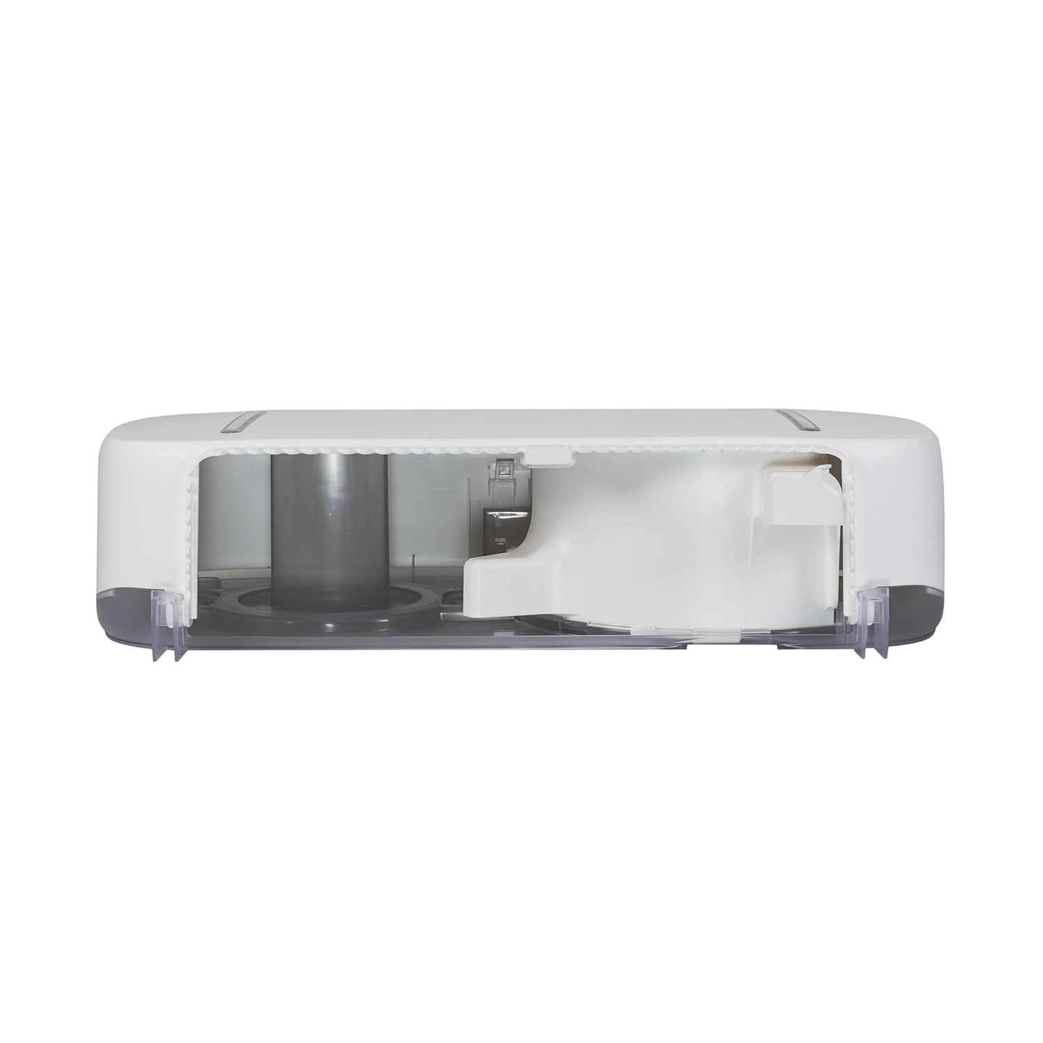 Elevate your restroom experience with this sophisticated twin jumbo bath tissue dispenser. The sleek, modern design in white adds a touch of elegance to any bathroom setting. Built for high-traffic environments, this dispenser combines style with exceptional durability. The practical design features viewing windows for easy monitoring of tissue levels, ensuring timely refills. Installation and maintenance are hassle-free, with a universal waffle key system that simplifies access. This versatile dispenser accommodates two 9-inch jumbo rolls with a 3.25-inch core diameter and works seamlessly with any brand or quality of tissue. Perfect for commercial spaces, this dispenser delivers both functionality and aesthetics while maintaining consistent, reliable performance. The thoughtful engineering ensures smooth dispensing and reduces maintenance time, making it an ideal choice for facilities seeking a dependable, professional solution (Model Number: R4200WH).