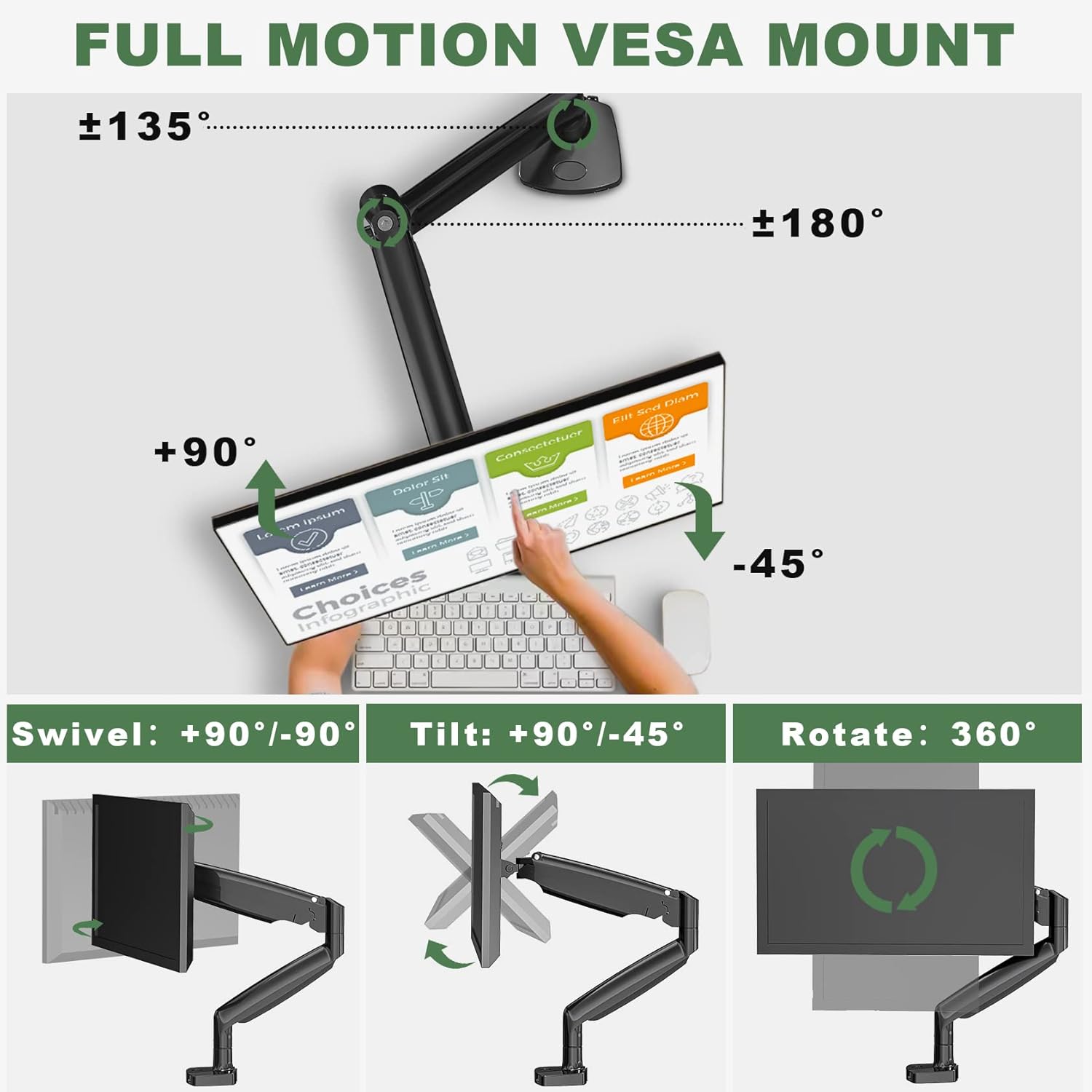 | Movement Type | Articulating, Swivel |