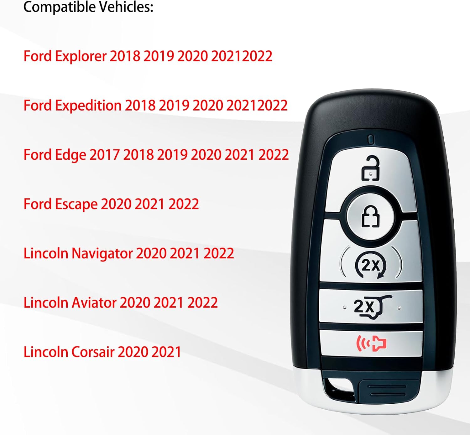 Specification:FCC ID: M3N-A2C93142600Type:5 ButtonCompatible with Part Numbers: 164-R8198, 164-R8278,164-R8226, 5933985, 5938568Frequency: 902 MhzCompatible Vehicles:F ord Explorer 2018 2019 2020 20212022F ord Expedition 2018 2019 2020 20212022F ord Edge 2017 2018 2019 2020 2021 2022F ord Escape 2020 2021 2022 Lincoln Navigator 2020 2021 2022 Lincoln Aviator 2020 2021 2022 Lincoln Corsair 2020 2021 Package Includes:1X remote key
