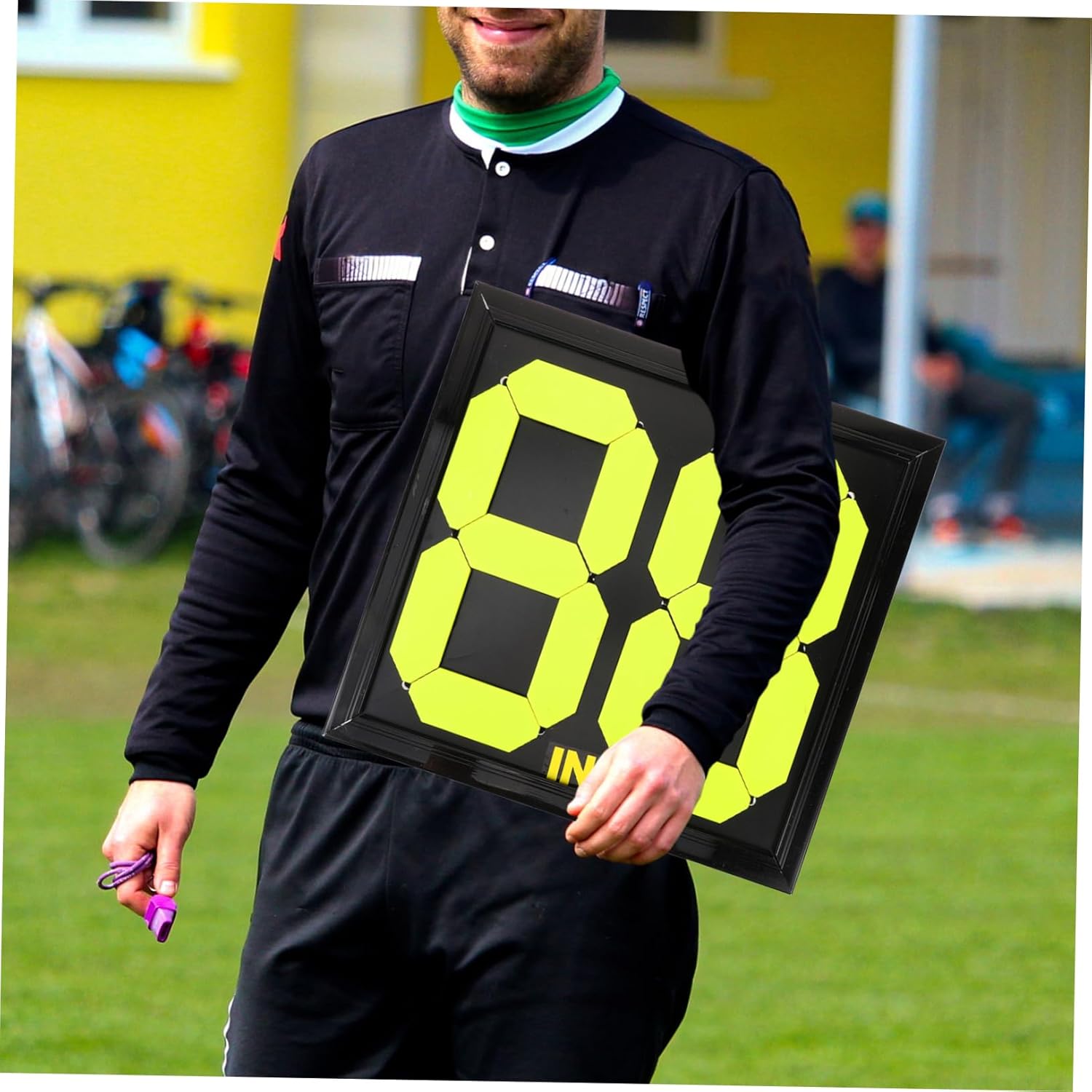 Package List 1 x football substitution board Features -visible: the feature clear fonts and bright colors, making them easy to recognize by referees and players football officials accessories -Color:Black football counter -Versatile for multiple sports: while ideal for football, it can also be used in other team sports like basketball and volleyball referee's equipment -Size:43.00X37.50X2.00cm/16.90X14.74X0.79in soccer markers -Streamlined substitution: the manual design makes that player changes are completed quickly and easily during the game referee game accessory -Conveniently portable: its compact and lightweight design makes it easy to carry and store, providing convenience foosball table parts -Material:PP football officials chain clip -Longlasting durability: constructed from PP materials, this substitution board is built to endure extensive use referee kitGoods Informationsoccer markers This football substitution board combines functionality with durability, making it an indispensable tool for referees.foosball table parts This board helps referees manage substitutions efficiently, the smooth operation of football matches.soccer scoreboard The bright fluorescent numbers make visibility, while the sturdy construction long-term use