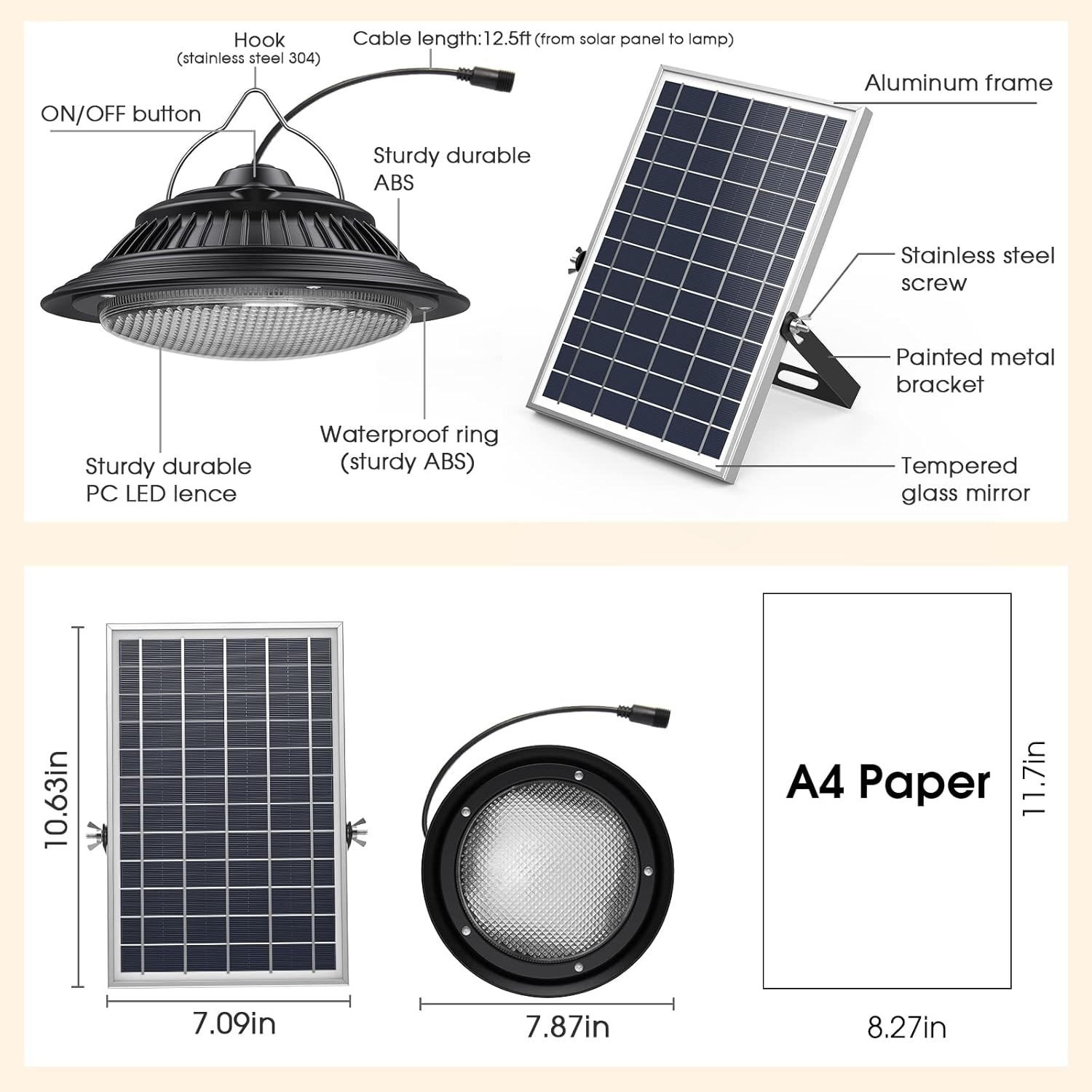 | Included Components | 1*Solar Panel(with bracket & cable), 1*Lamp, 1*Remote Control, 1*Detailed Manual, Some Mounting Screws |