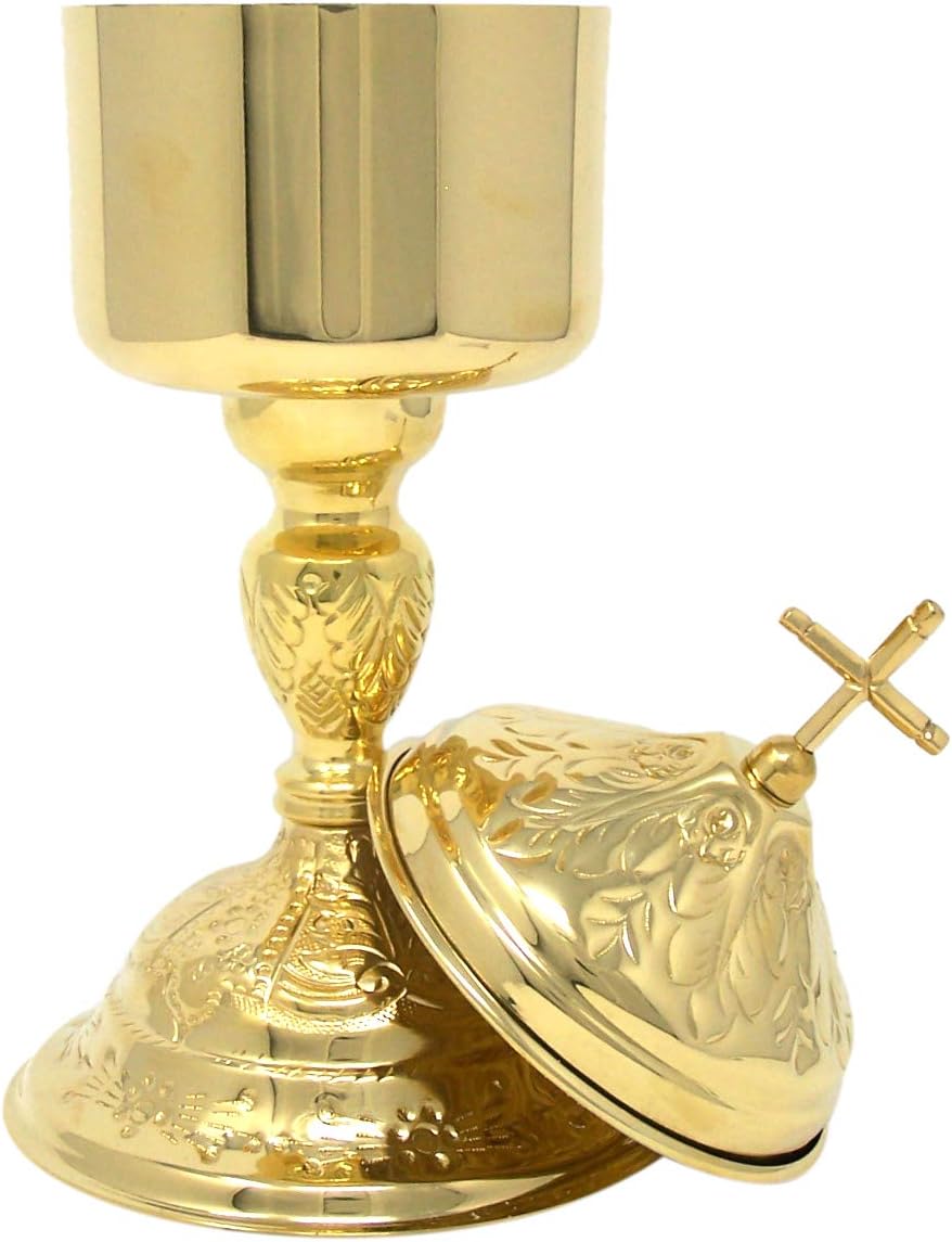 Material - High Polished Brass - Size - 10 Inches (H) x 2 1/2 Inches (D) with Lid on- Used To Contain And Distribute The Hosts For The Sacrament Of The Holy Communion - This Makes A Lovely Gift For Your Local Church - Features A Small Cross Upon The Lid