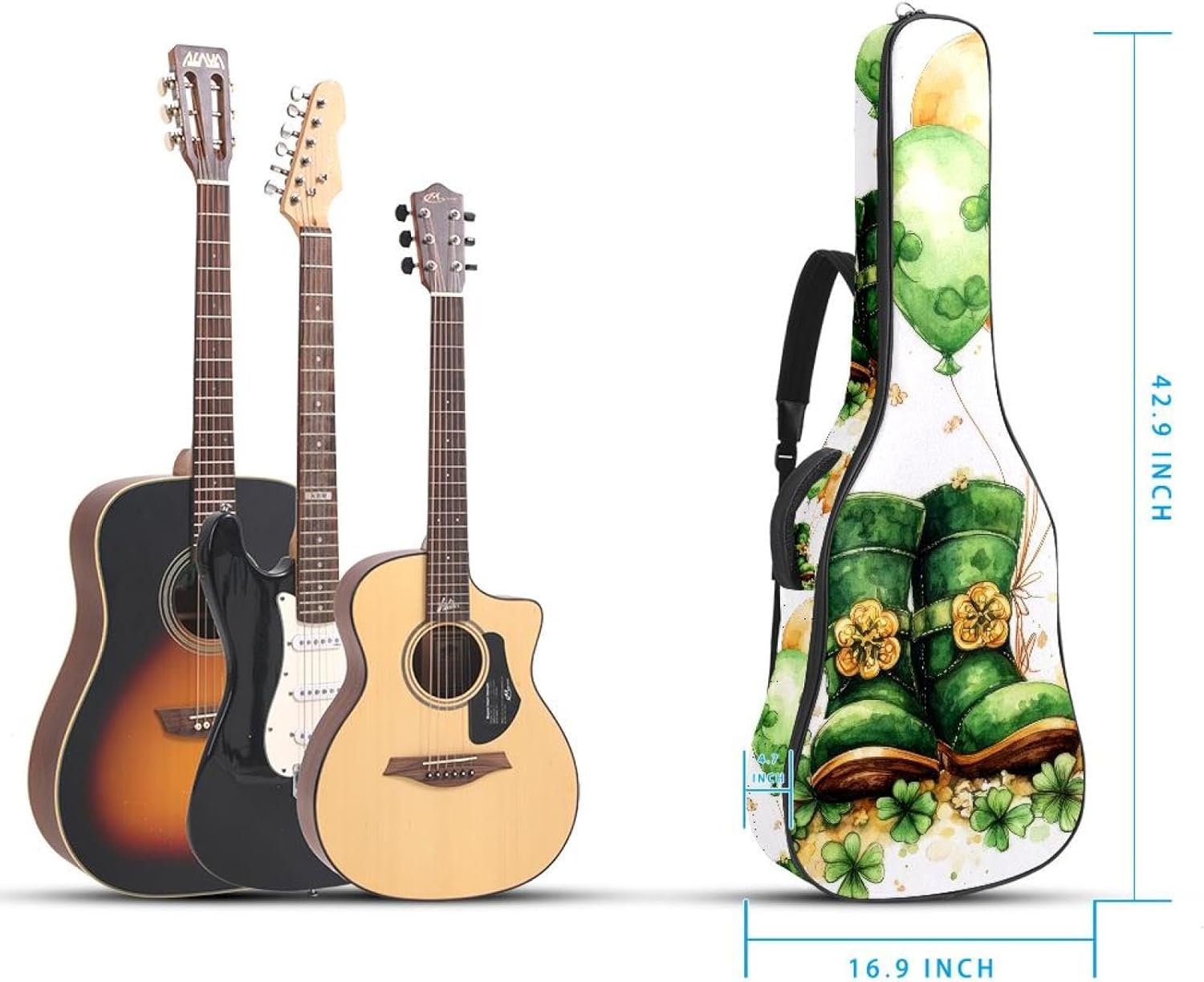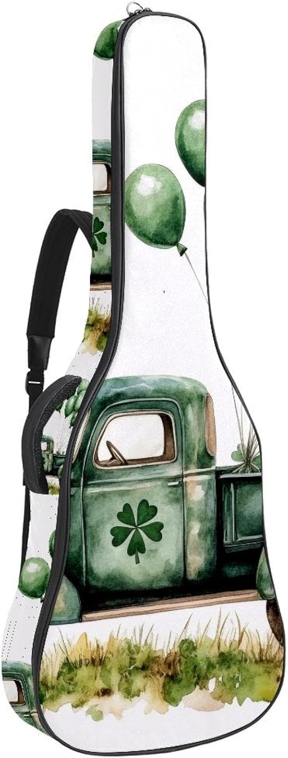 St. Patrick's Day Horseshoe Clover and Balloons Acoustic Guitar Gig Bag, 1 cm Thick Padding Waterproof Guitar Bag Backpack for 40 41 42 Inch Electric Bass Classical Guitars